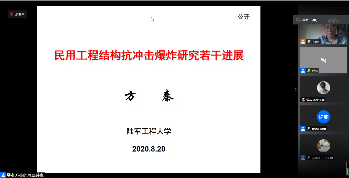 下午15:30,由陆军工程大学方秦教授作学术报告,题目为《民用工程结构抗偶然性冲击爆炸若干研究进展》,伟德国际1946王劲松副院长主持。方教授的讲解内容主要包括抗爆基本知识和数值模拟方法。抗爆基本知识包括了建筑物抗恐怖爆炸袭击、燃油气等危化品爆炸灾害效应及防护、核电站结构抗大型客机撞击、提高结构抗爆能力的新材料新结构新技术和抗爆结构设计计算方法等,数值模拟方面则详细讲解了建模及分析方法。最后方教授回答了同学们提出的一些问题和想法。