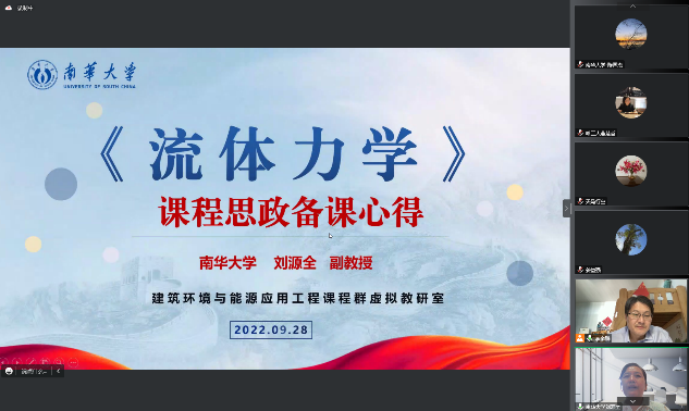 2022年9月28日下午,《流体力学》课程思政备课活动在建筑环境与能源应用工程专业全国虚拟教研室隆重举行,全国60余所高校的100余名教师参会,我院建环系刘源全老师受邀作为三名主讲教师之一做了精彩报告,获得了与会专家的高度肯定。