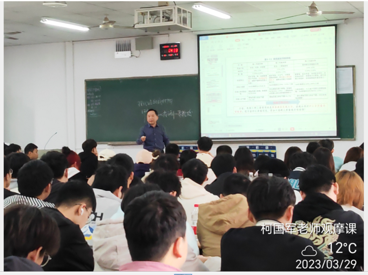 2023年3月29日,风和日丽,处处洋溢着春天的气息。下午5-6节课是伟德国际19462023年春季学期思政、创新和实践成果进课堂活动开展以来,第四位老师开讲观摩课程,主讲人是湖南省思政课程一等奖获得者柯国军教授。