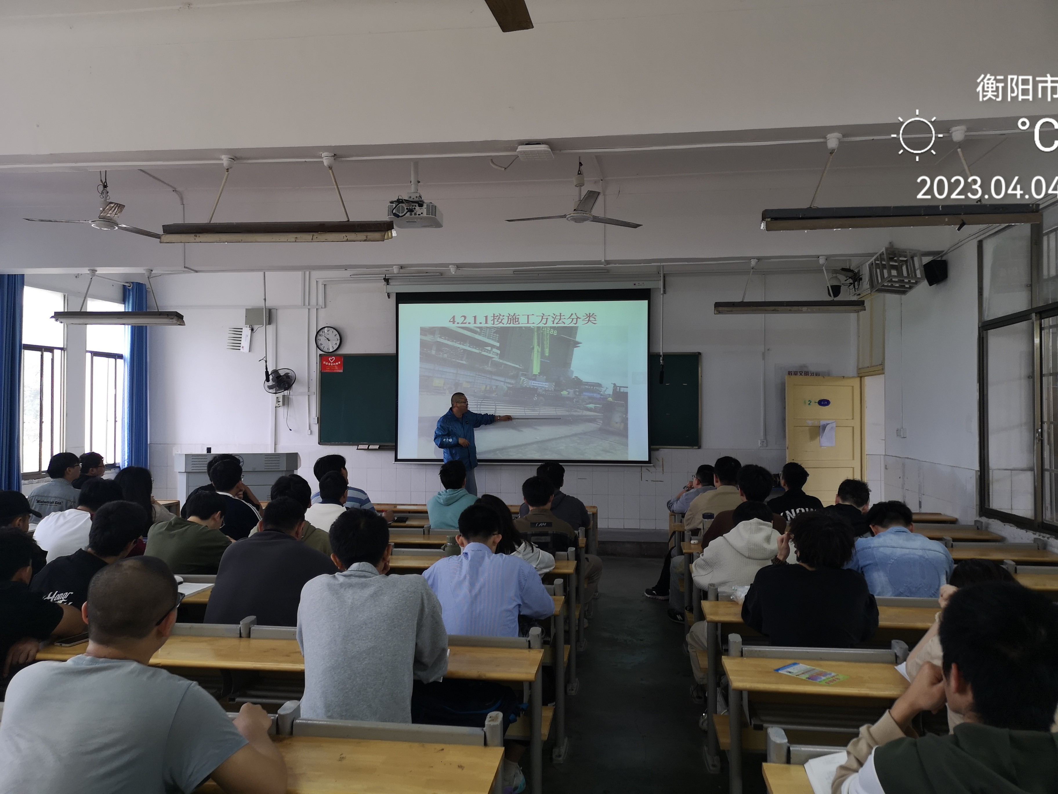 樊老师提前15分钟到达授课教室(核学楼418)进行课前准备,上课前运用“雨课堂”进行考勤。岩土专业的学生们有序前排入座。本次课主讲的内容是基础工程中的桩基础分类,樊老师由实际工程背景导入新课,详细讲述了桩基础按施工方法分类、按承载性状分类、按成桩挤土效应分类、按桩径大小分类及作为隐蔽工程的桩的质量检验,并附以丰富直观的工程实际案例图片,让学生充分了解各种桩基础的特点。