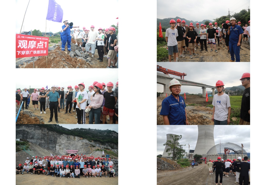其次,项目工程师和现场技术人员分别针对下穿京广铁路顶涵、隧道前高填方路基、鸡嘴山隧道、跨京广铁路桥0号桥台、跨京广铁路转体桥梁、清远电厂等6处项目重难点技术节点,从项目概况、施工工艺、现场管理、安全注意事项等方面进行讲解,并细心为学生现场解疑。