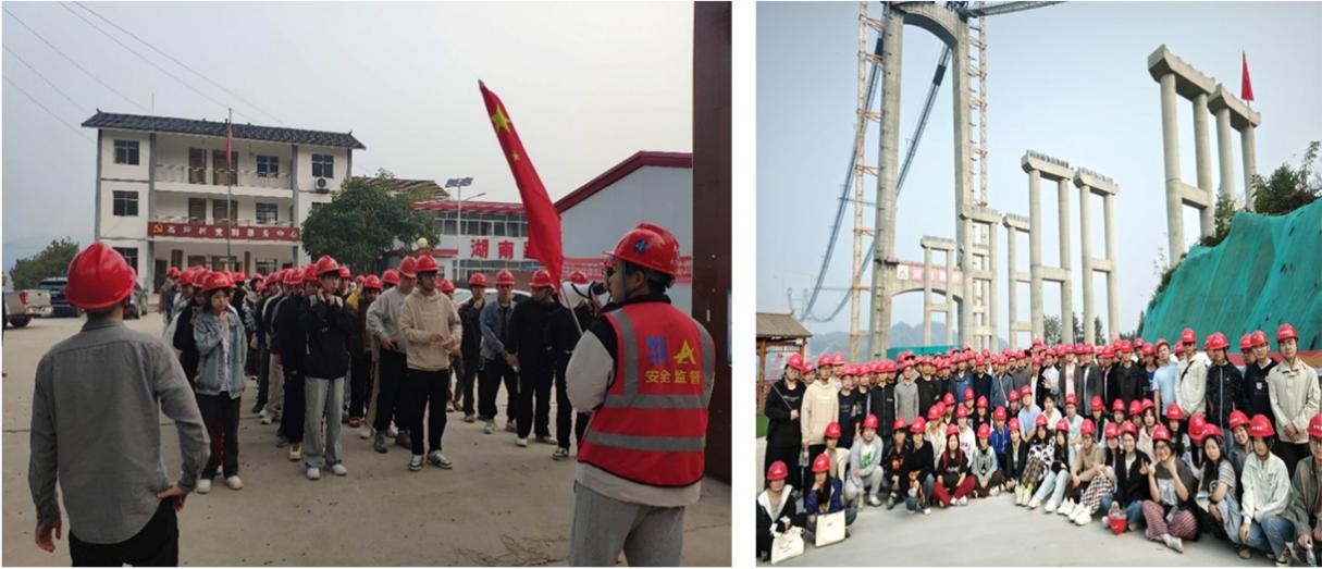 11月14日上午,湖南路桥集团张官高速洞庭溪沅水特大桥TJSG标段项目部苏巧江经理对师生一行的到来表示热烈欢迎,并简要介绍了项目的基本情况;项目总工程师赵定发宣读了项目现场安全注意事项,并告知现场危险点。