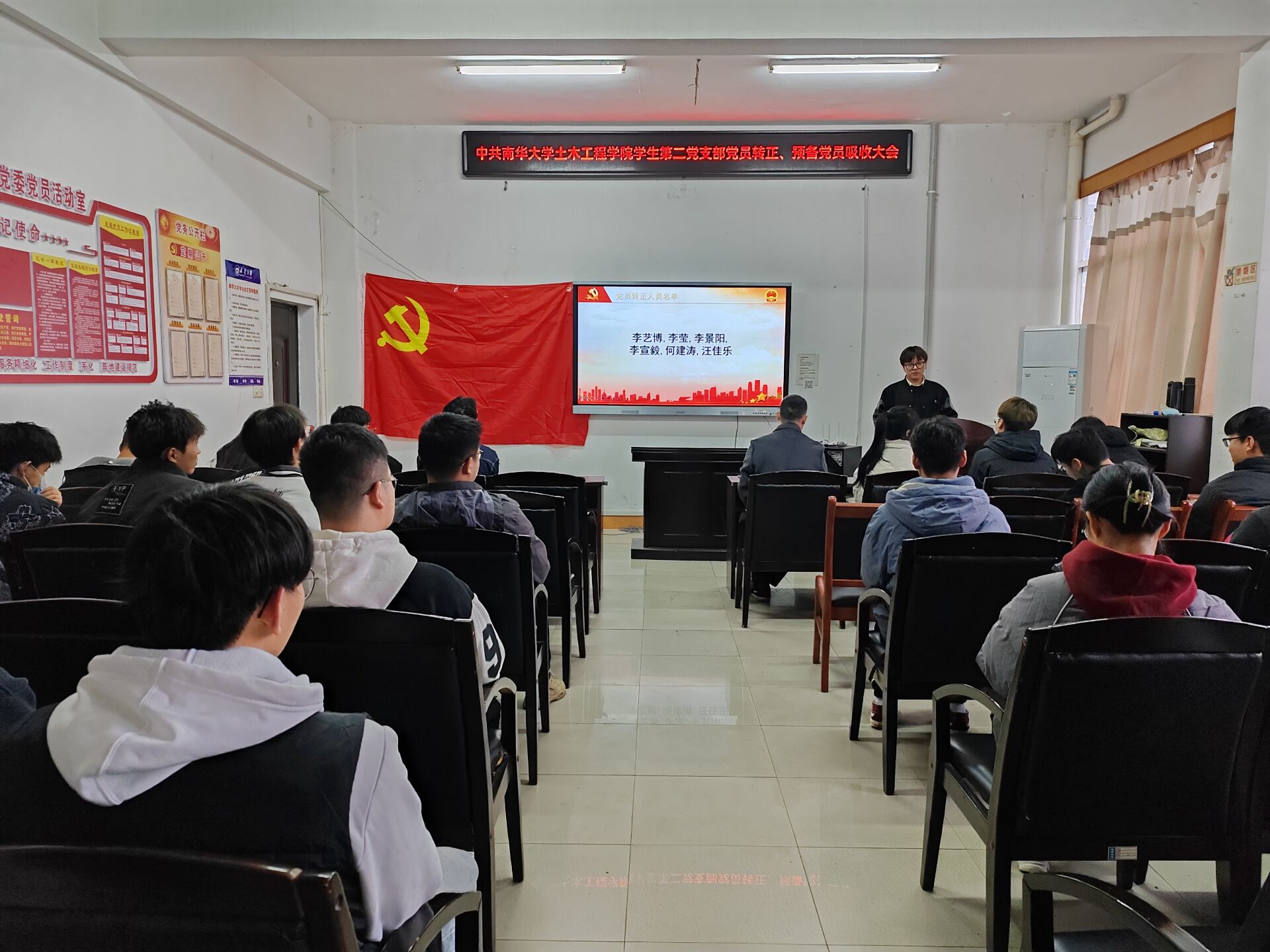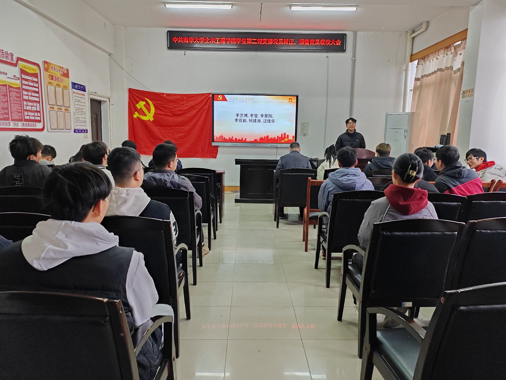 2023年12月1日下午四点半,中共伟德国际1946学生第二党支部预备党员转正大会于土木楼四楼会议室顺利召开。参加此次会议的有伟德国际1946学生第二党支部全体党员。会议由支部书记彭兴明老师主持。