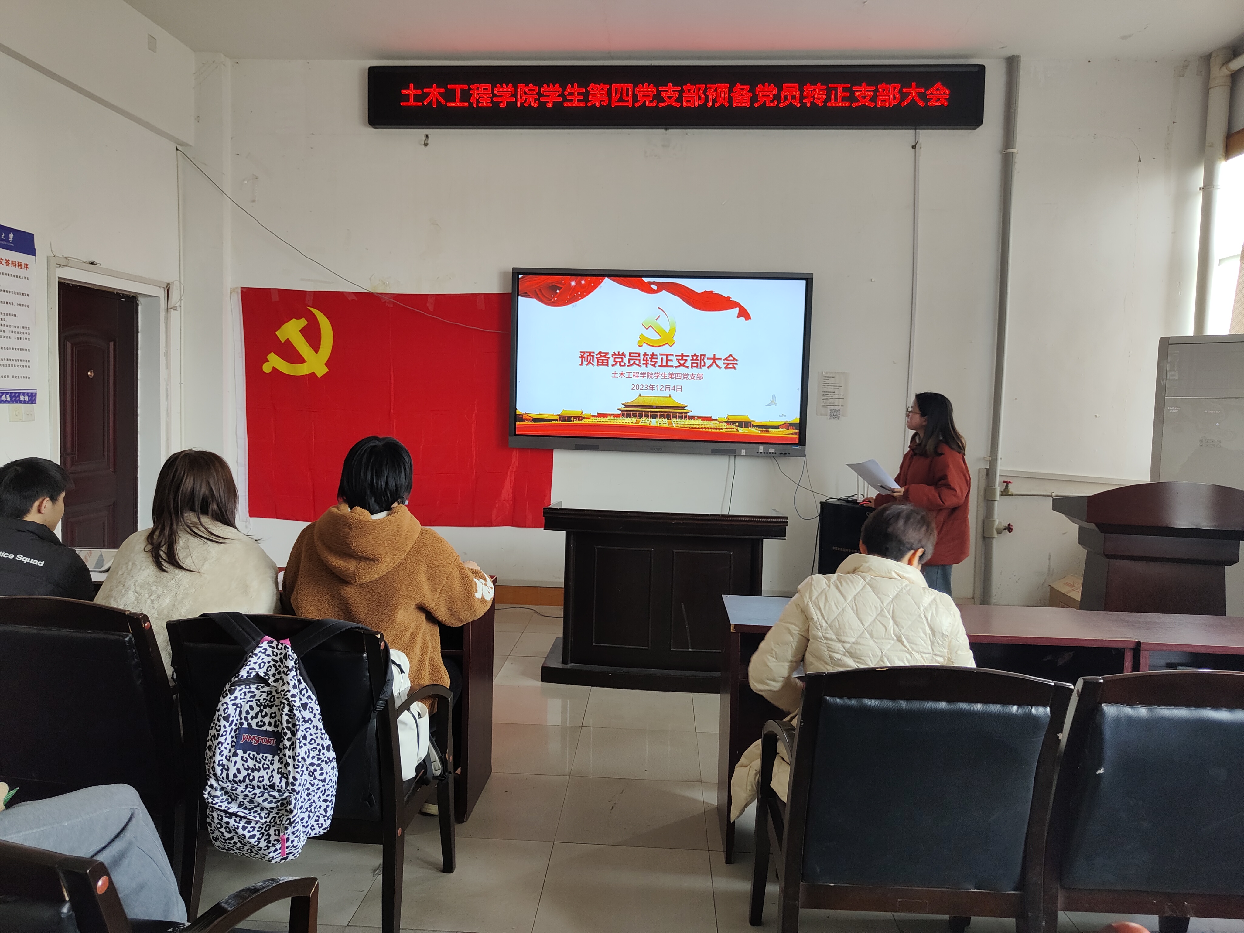 2023年12月4日下午,伟德国际1946学生第四党支部在土木楼四楼会议室召开预备党员转正支部大会,会议由支部副书记彭晶晶主持,支部全体党员参加。