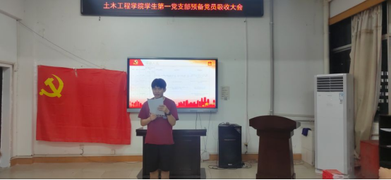 大会第二项,由邓阳、王然生等14名同志依次就个人自身情况、对党的认识、入党动机等方面进行相关发言,并由其入党介绍人介绍其相关情况,对其能否吸收入党发表意见。随后,经支部大会讨论和正式党员投票表决,对该14名发展对象是否吸收入党进行投票表决。经无记名投票决定,同意吸收邓阳、王然生等14名同志为中共预备党员。