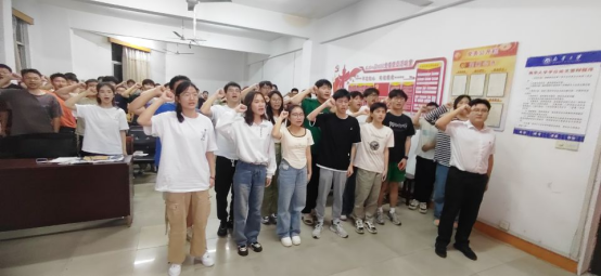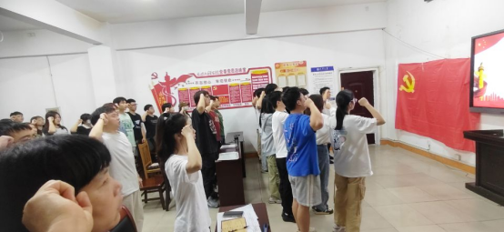 大会第四项,特邀优秀毕业党员张钞同志带领全体党员宣誓。