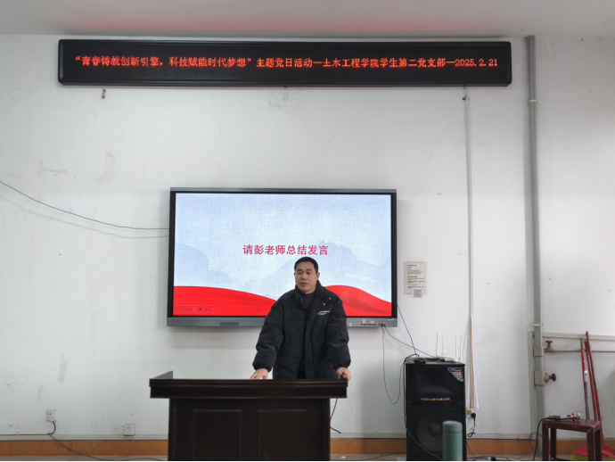 2025年2月21日下午14:30,伟德国际1946学生第二党支部“青春铸就创新引擎,科技赋能时代梦想”主题党日活动于土木楼四楼会议室顺利召开。出席本次会议的有伟德国际1946学生第二党支部全体党员。会议由彭兴明老师主持。
