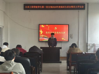 2025年2月27日下午15:30,伟德国际1946学生第一党支部在土木楼四楼会议室召开2024年度组织生活会暨民主评议大会。会议由支部书记贺淑珍主持,支部全体学生党员参加会议。