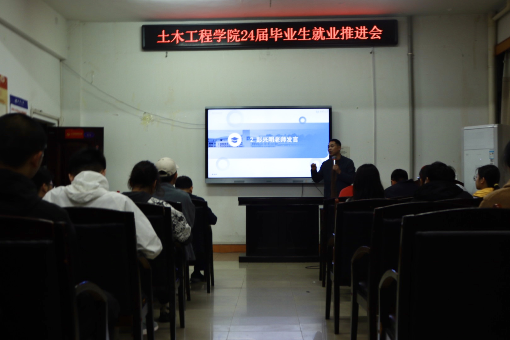 为进一步推进学院2024届毕业生就业工作,2024年3月26日晚七点,伟德国际1946于土木楼四楼会议室召开2024届毕业生就业推进会。出席本次会议的有伟德国际1946党委副书记唐素芝老师、征兵专干彭兴明老师、辅导员贺淑珍老师、吴旦老师及各系室主任、毕业生班主任及未就业24届毕业生。会议由彭兴明老师主持。