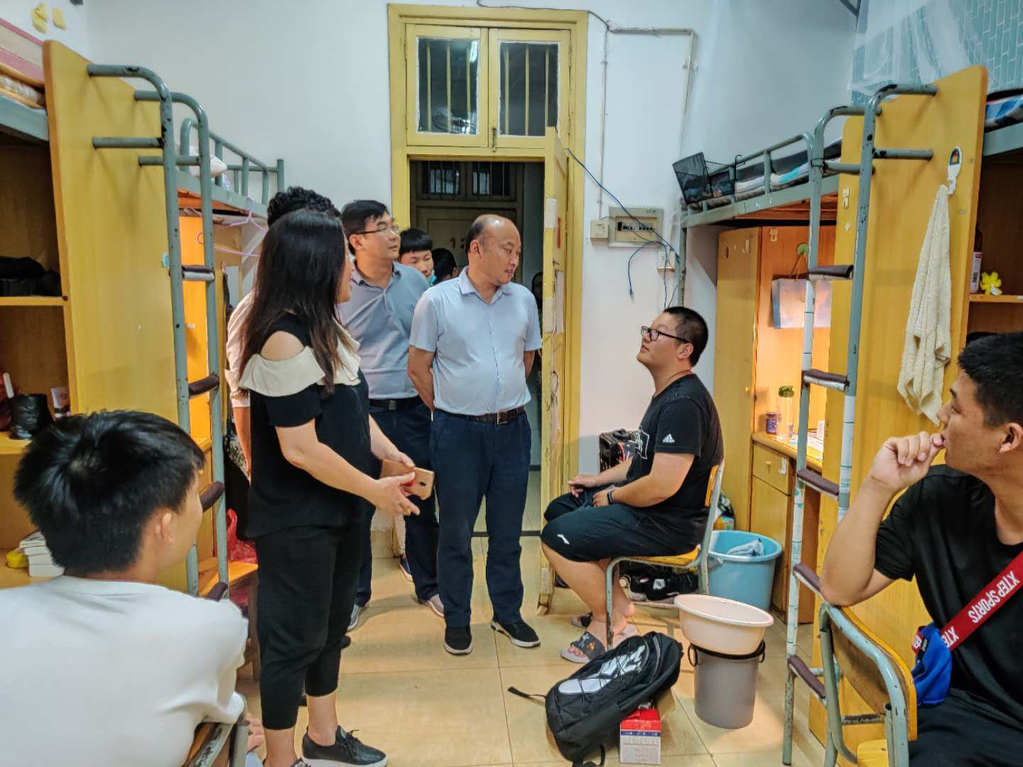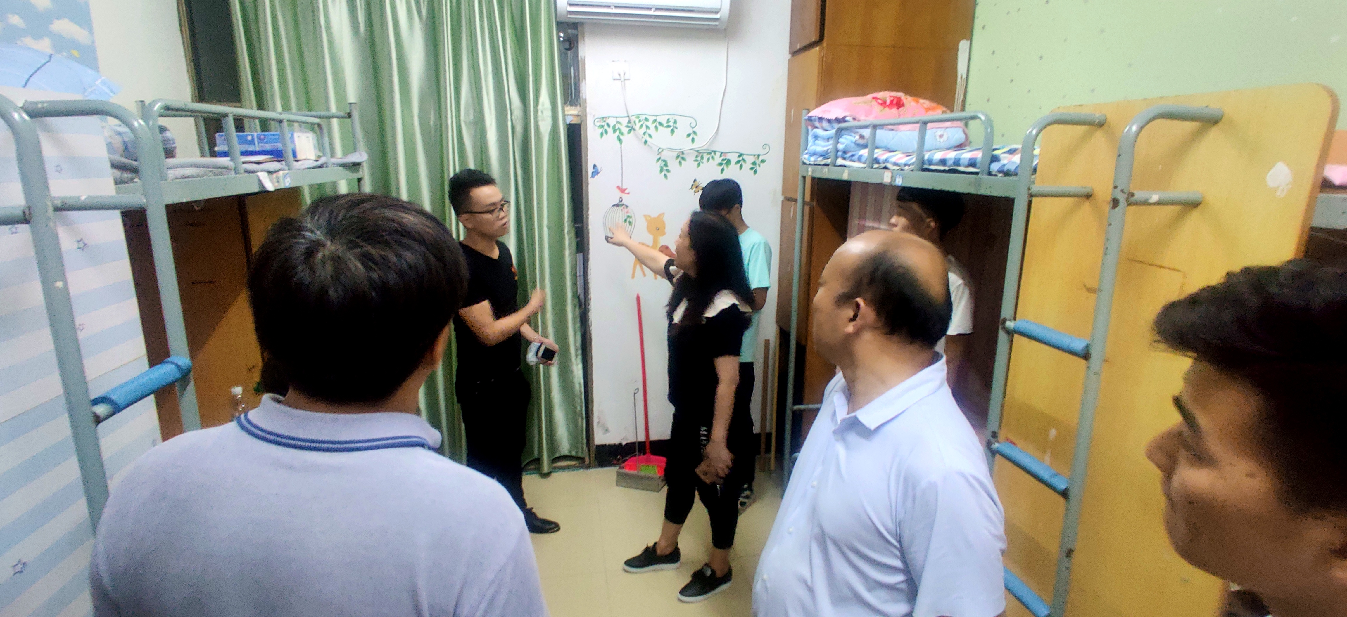 每走进一个寝室,老师都仔细查看学生寝室设施,关注新生适应情况,表示大家有问题可以及时向院系反应,院系会帮助大家解决难题。他们亲切的与学生进行交谈,充分了解新生对大学生活的想法,询问学生学习和生活等情况,并提醒同学们日常生活中,务必注意财物安全、用电安全、人身安全,保持宿舍卫生、加强内务整理。