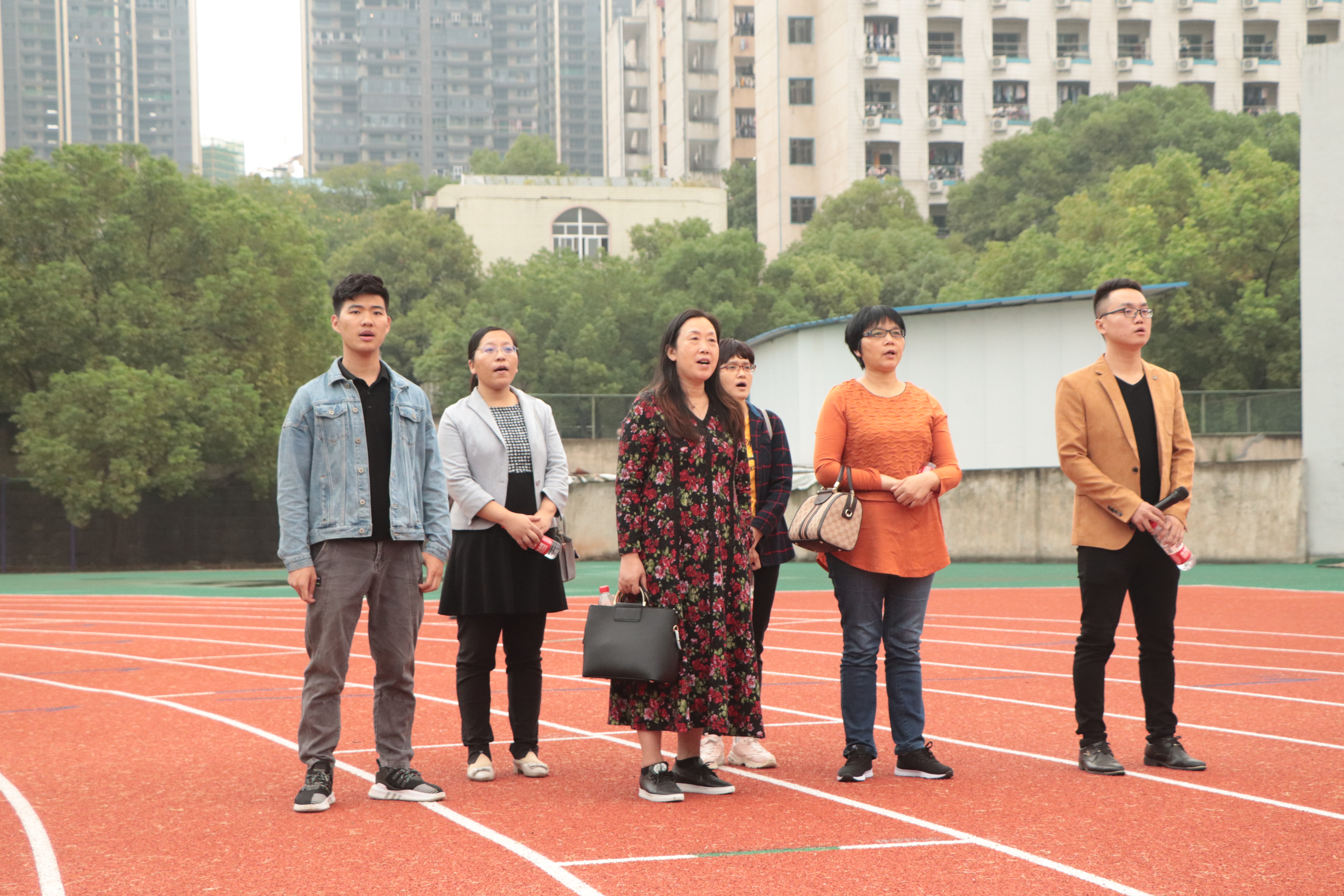 首先,全体人员共同合唱中华人民共和国国歌。伟德国际1946位于第二位出场,在张孝磊老师一声“耀我南华,兴我土木”之后,新生用手中的旗帜摆出“土木20”的姿势,标志着我们伟德国际1946新生的合唱表演正式开始。