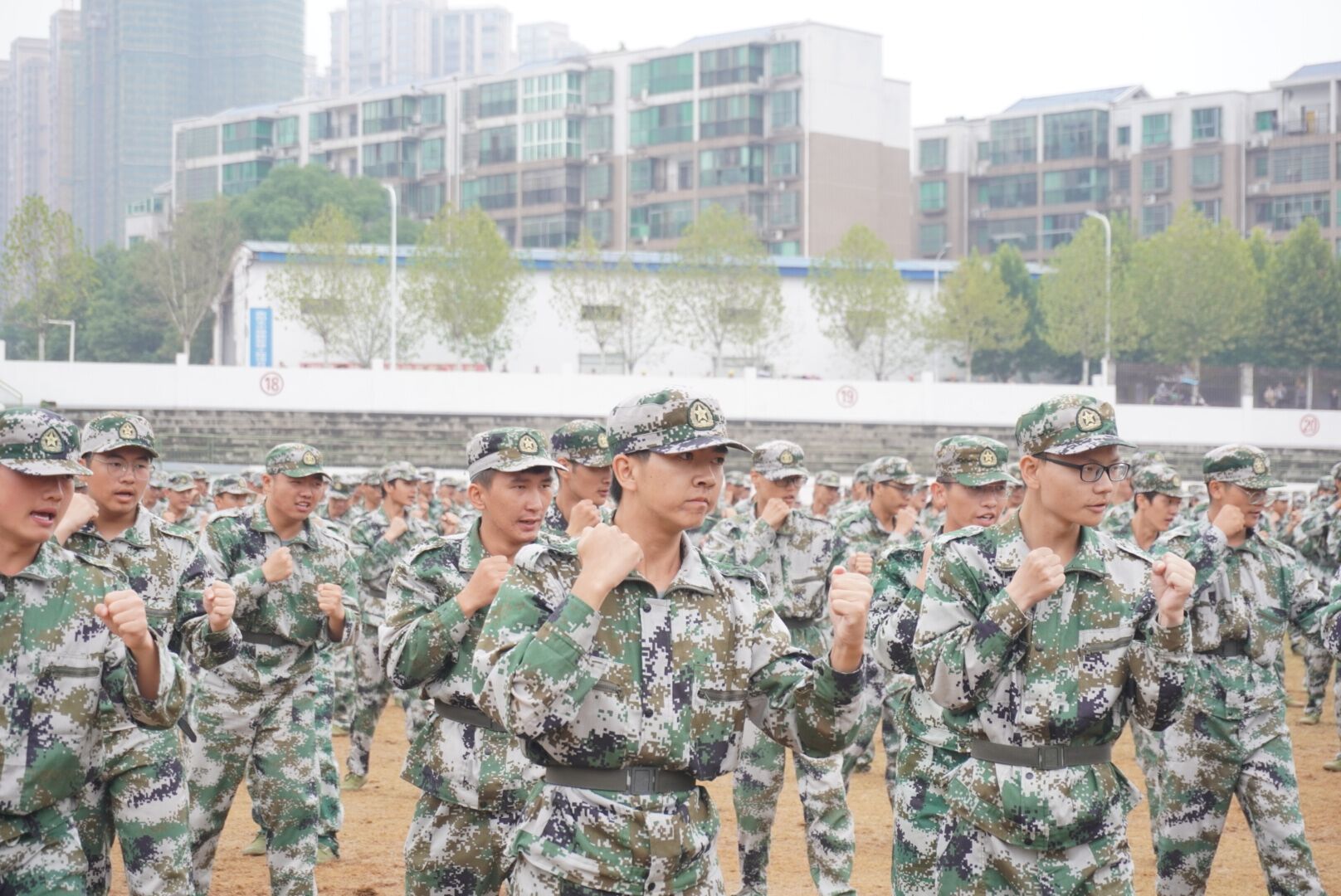 九点整,整齐排列的各个连队合唱国歌,全场人员均凝视着冉冉而升的国旗。唱毕,教官们踢着正步,表情严肃而庄重的高举红旗进行首次开场,总教官高声宣布阅览开始,一个个方队井然有序的从主席台前经过,其中,来自伟德国际1946的方队,在教官的带领下,有秩序进行平地走、正步和跑步的效果展示,整齐划一的抬手与落下,震地有声的步伐,雄浑辽阔的口号声,都足以向领导们表示这段时间训练成绩的斐然。