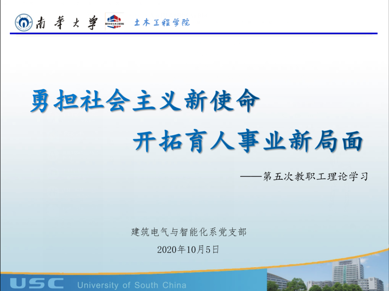 为培育和践行社会主义核心价值观,传承和弘扬中华优秀传统文化,深入学习《习近平谈治国理政》第三卷,领会习近平总书记关于社会主义核心价值观的重要论述,贯彻落实《新时代公民道德建设实施纲要》《新时代爱国主义教育实施纲要》等文件精神,伟德国际1946于2020年10月5日开展了以“勇担社会主义新使命·开拓育人事业新局面”为主题的第五次理论学习讨论。讨论由党支部副书记张孝磊主持,建筑电气与智能化系党支部全体教职工党员参加讨论。