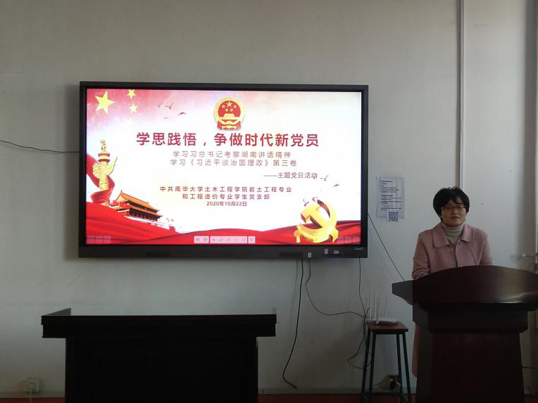 2020年10月22日下午14:30,伟德国际1946岩土工程专业和工程造价专业学生党支部在土木楼四楼会议室开展“学思践悟,争做时代新党员”主题党日活动,深入学习习近平总书记在湖南考察的重要讲话精神,集中学习《习近平谈治国理论》第三卷,活动由支部书记李翠新老师主持,支部全部党员参加。