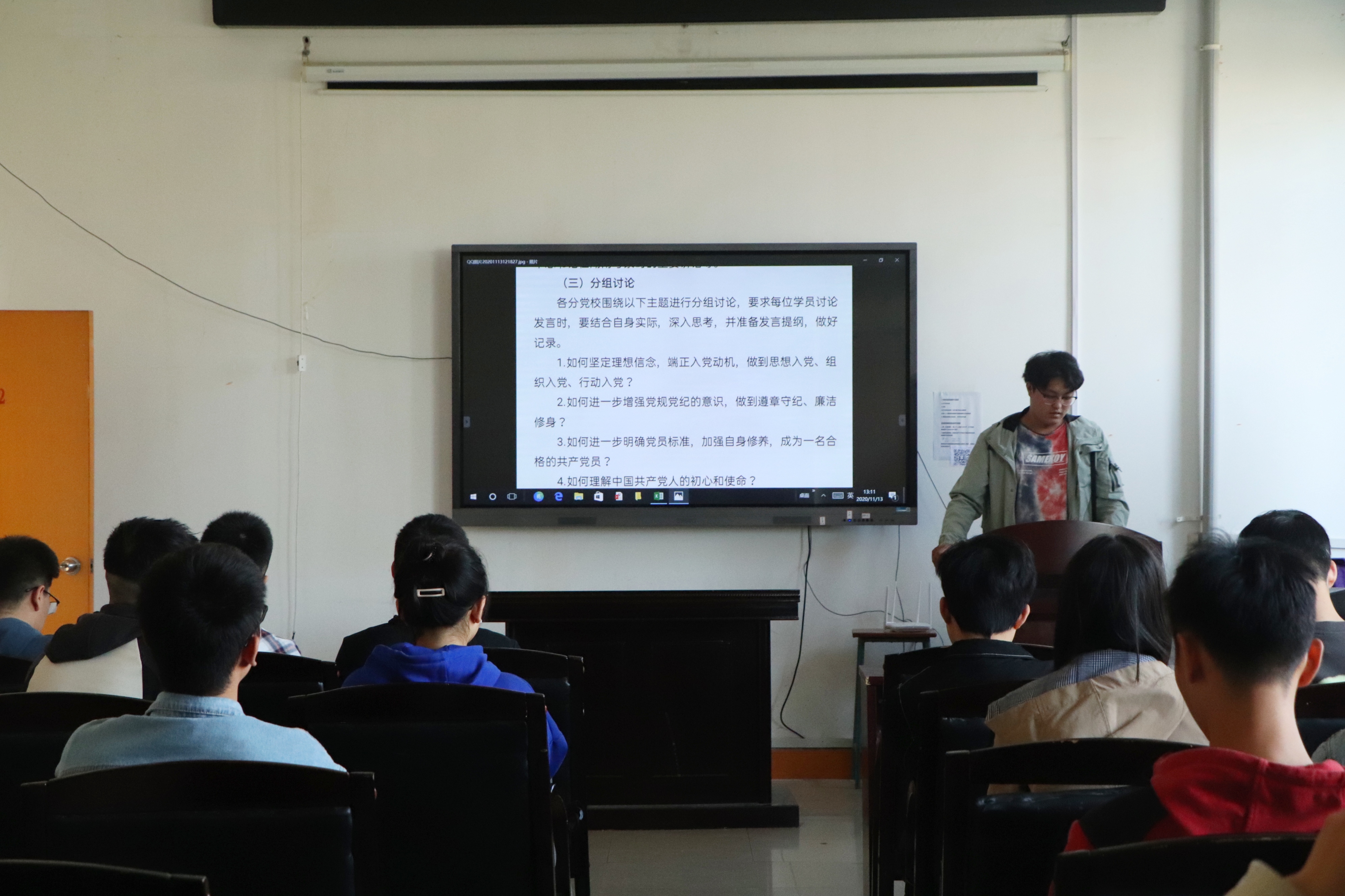 2020年11月13日中午,伟德国际1946发展对象培训班专题讨论会在土木楼四楼会议室举行,全体培训班学员参加此次会议,会议由培训班联络员宋英臣主持。