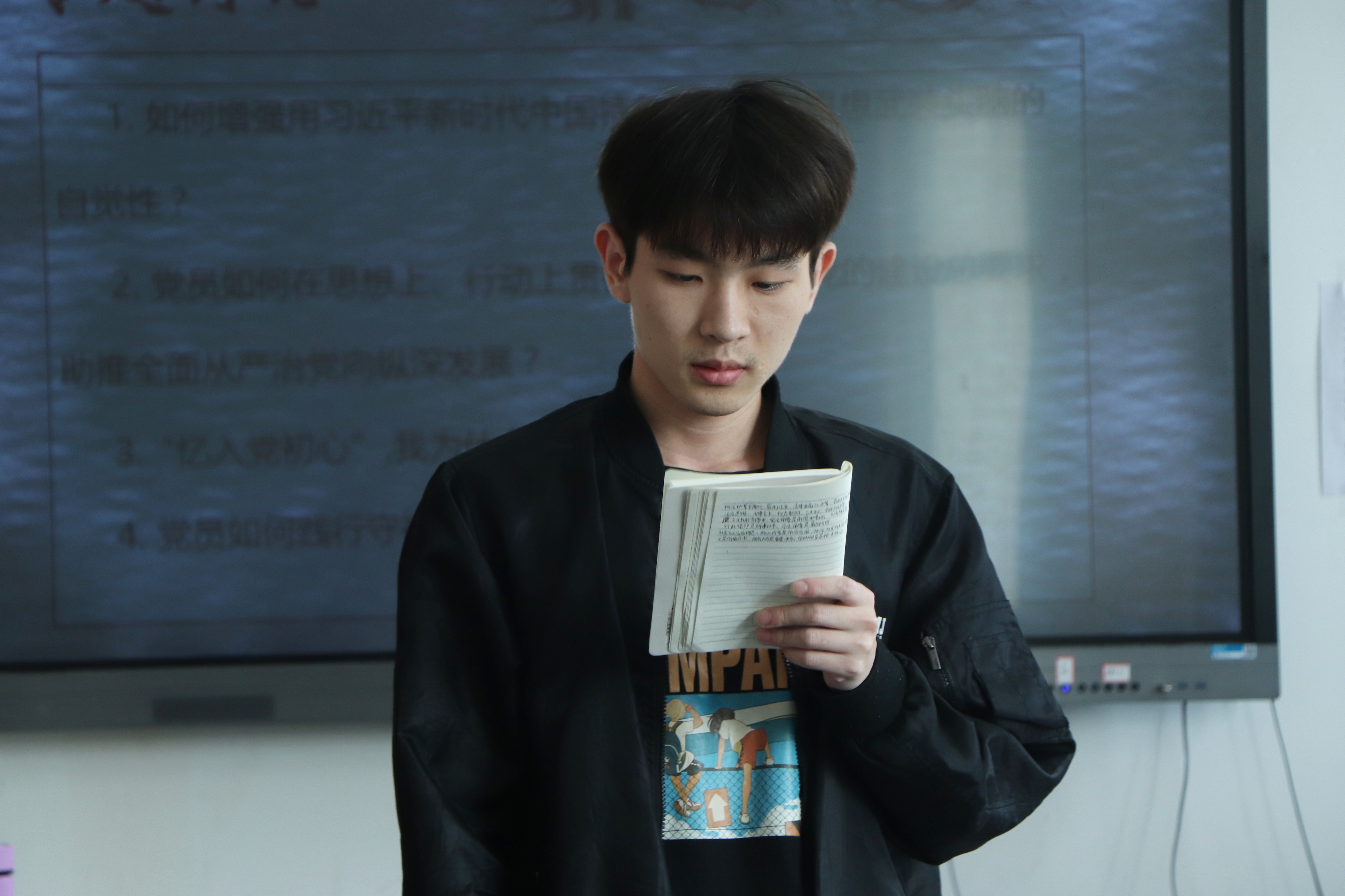 此次专题讨论围绕“如何增强用习近平新时代中国特色社会主义思想武装头脑的自觉性”、“党员如何在思想上、行动上贯彻落实新时代党的建设总要求,助推全面从严治党向纵深发展”、“‘忆入党初心’,我为什么加入中国共产党”、“党员如何践行守初心担使命”四个主题展开。首先是分小组自由讨论,然后各小组代表总结发言,各支部的学员们提到,新时期大学生党员在思想上、行动上要积极跟随党的脚步,贯彻落实习近平新时代中国特色社会主义思想,坚持四个意识、四个自信,坚定理想信念,坚守入党初心,坚持党性原则,加强自我约束,不折不扣执行党的纪律和规矩,充分发挥先锋模范作用,努力成为一名优秀的共产党员。