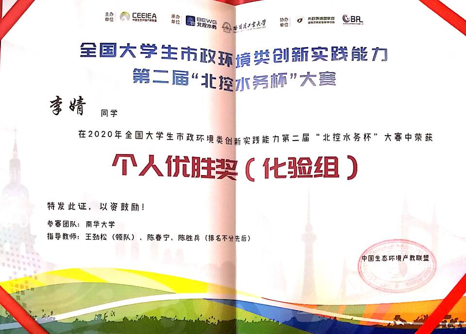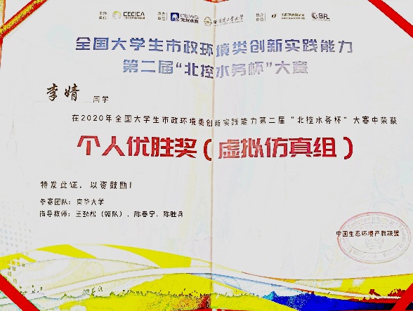 本次竞赛的举办考验了学生实验基本功操作,培养虚拟仿真系统中对模拟的实际水处理中的事故判断、快速解决问题的能力,培养和锻炼了学生的实践动手能力和分析问题、解决复杂工程问题的能力。更是为全国各高校市政环境类创新实践搭建了交流平台,共同推进高校大学生创新实践能力的提升。我校参赛队在本次大赛获得了喜人成绩,伟德国际victor1946一队荣获团体二等奖,李婧同学荣获化验组个人优胜奖及虚拟仿真组个人优胜奖、李韬同学荣获化验组个人优胜奖、何鹏涛同学荣获化验组个人优胜奖,指导老师荣丽杉老师、刘迎九老师分别获得“优秀指导教师”的荣誉称号。