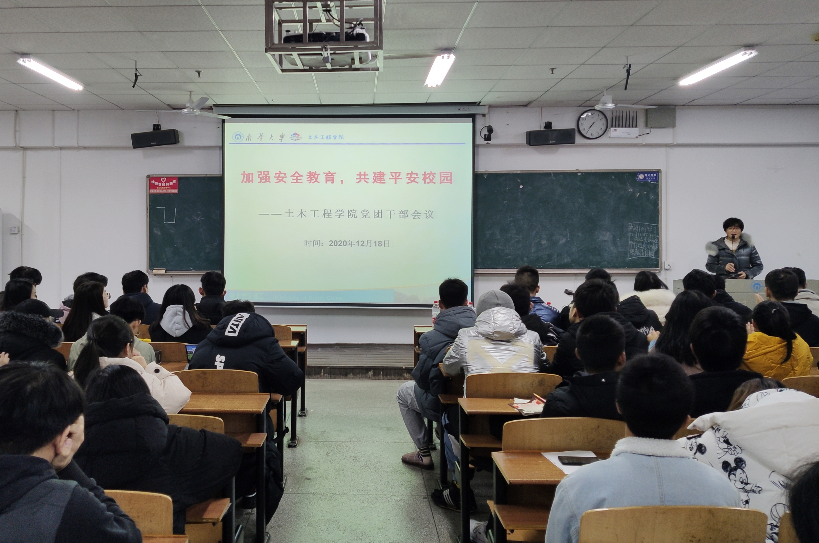 2020年12月18日晚七点半,伟德国际1946于南华楼412教室召开以“加强安全教育,共建平安校园”为主题的党团干部会议。伟德国际1946党委副书记唐素芝、学工室主任李翠新、辅导员老师贺淑珍、彭兴明、刘华、邓都、团委书记张孝磊出席本次会议。各支部全体党员、各班班长团支书、团学会各部门部长、团学会学社联主席团共同参与此次会议。会议由李翠新老师主持。