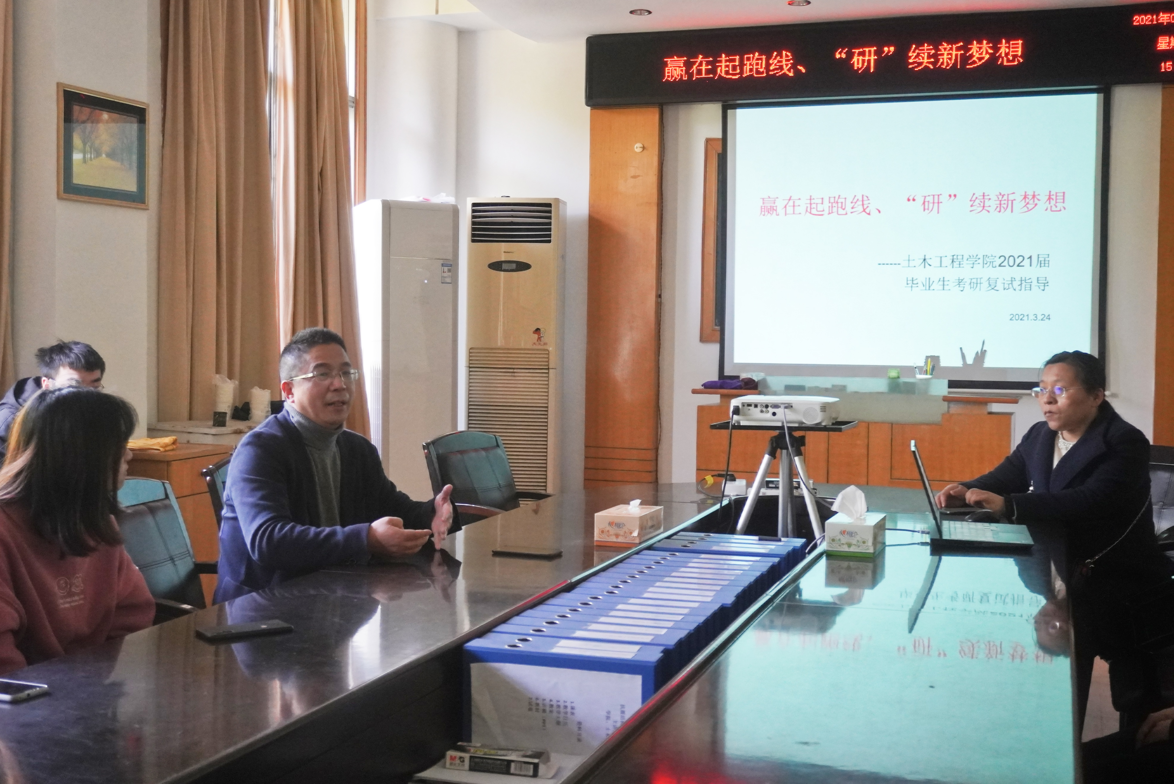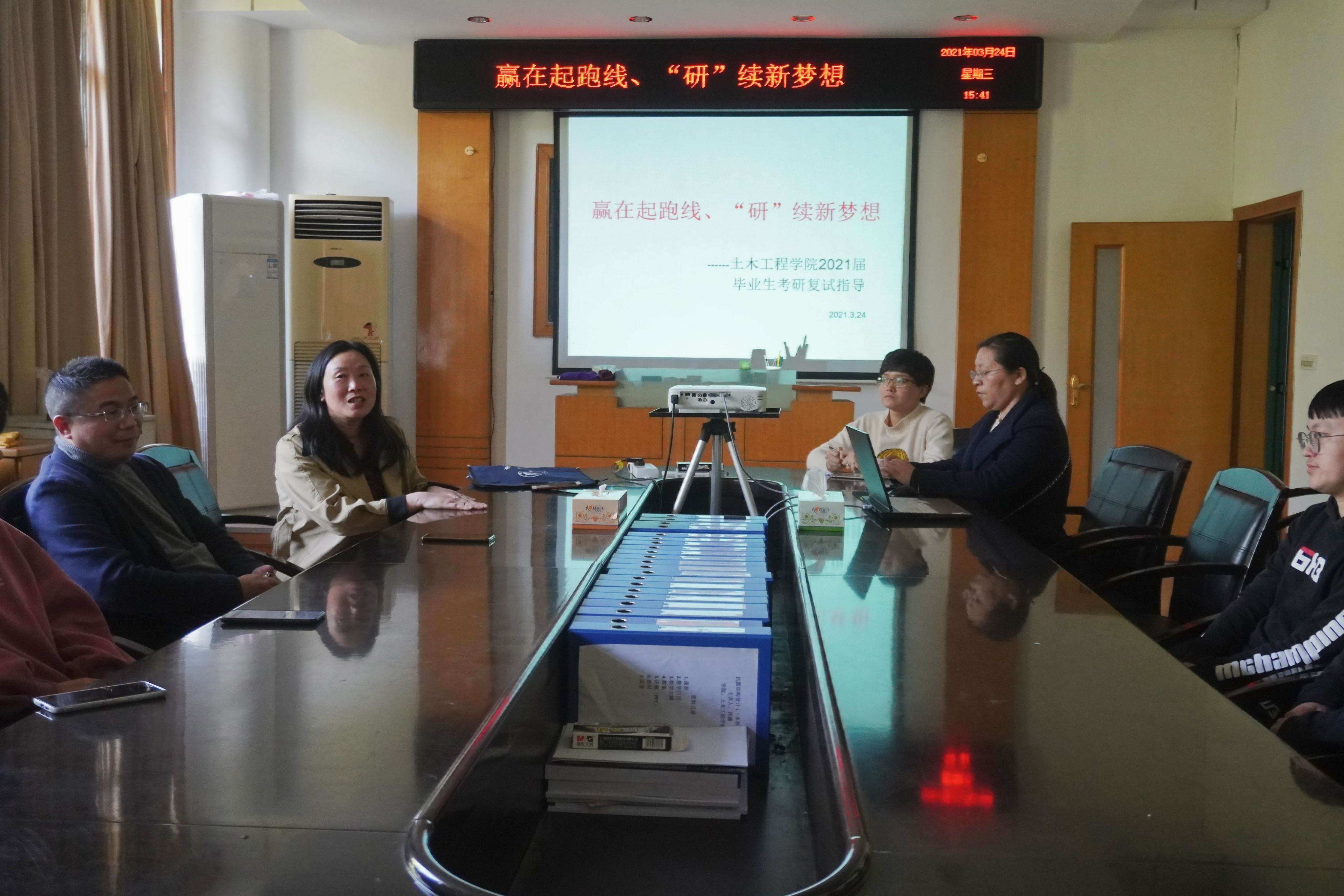 为帮助考研学生解决复试准备中遇到的问题和困难,有效提高考研通过率,2021年3月24日下午两点半,伟德国际1946于土木楼三楼会议室召开“赢在起跑线,‘研’续新梦想”考研复试指导交流会。出席本次会议的领导老师有伟德国际1946副院长王劲松及院党委副书记唐素芝,学工室主任李翠新、辅导员老师贺淑珍、彭兴明、刘华。