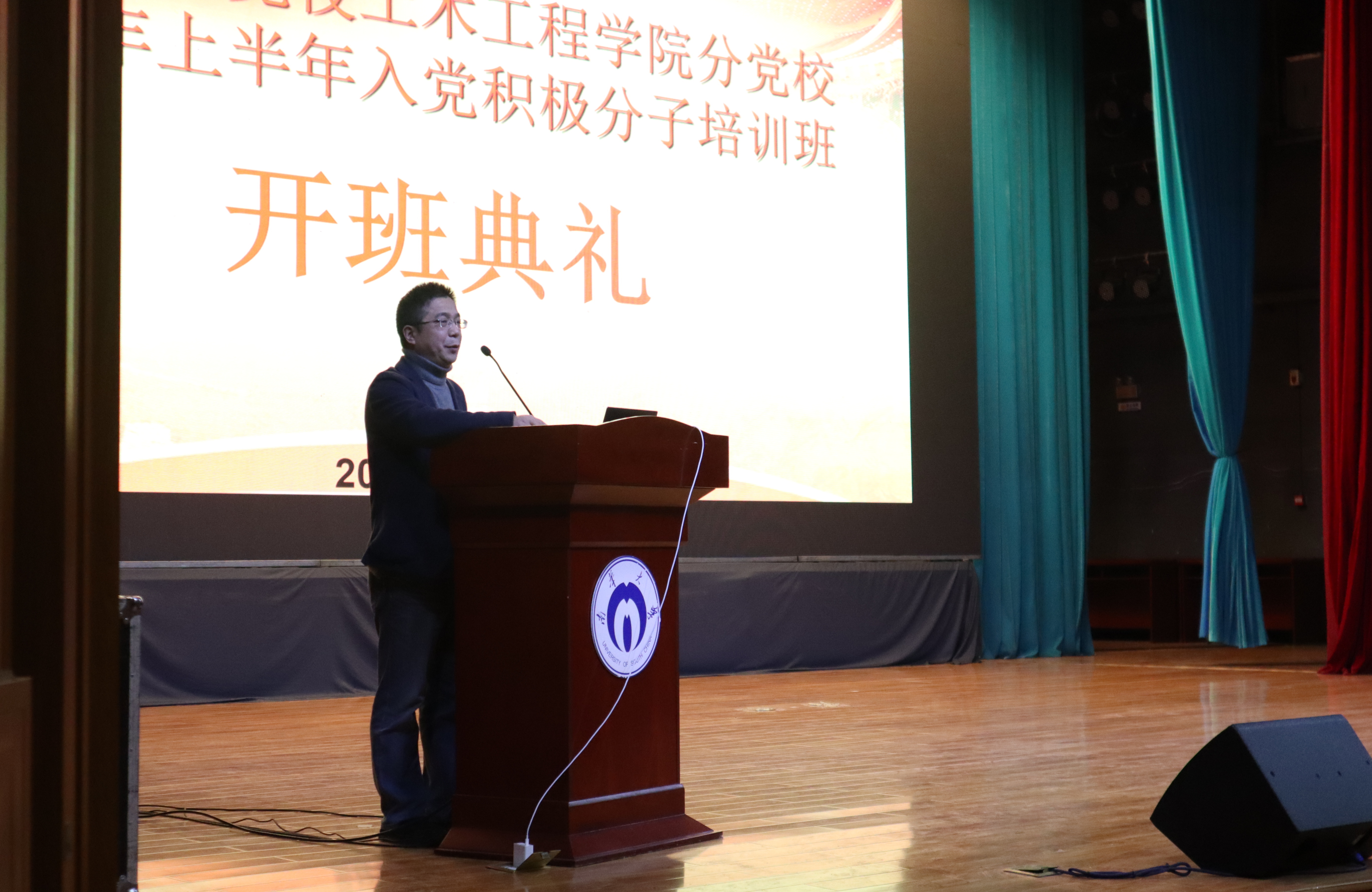 开班典礼在洪亮的国歌声中拉开帷幕。唐素芝书记和张孝磊老师分别为入党积极分子们宣读了培训班管理规定以及培训班分组情况。宣读完毕后,王劲松院长从四个方面对本次培训作动员讲话。他强调入党积极分子需端正学习态度,认真学习党的基本知识,深刻理会党在不同时期的心路历程以完成中华民族的伟大复兴这一重任;其次,入党积极分子应在学习中去思考和体会并学以致用,将学习的理论知识同专业知识相结合,从而引领专业的创新发展;最后,他指出大家要严格遵守纪律、争当学习模范。典礼最后,李翠新老师总结发言并希望所有入党积极分子能够高度重视、珍惜此次机会,以高标准、高要求要求自己,争取早日加入党组织。至此,本次开班典礼圆满结束。