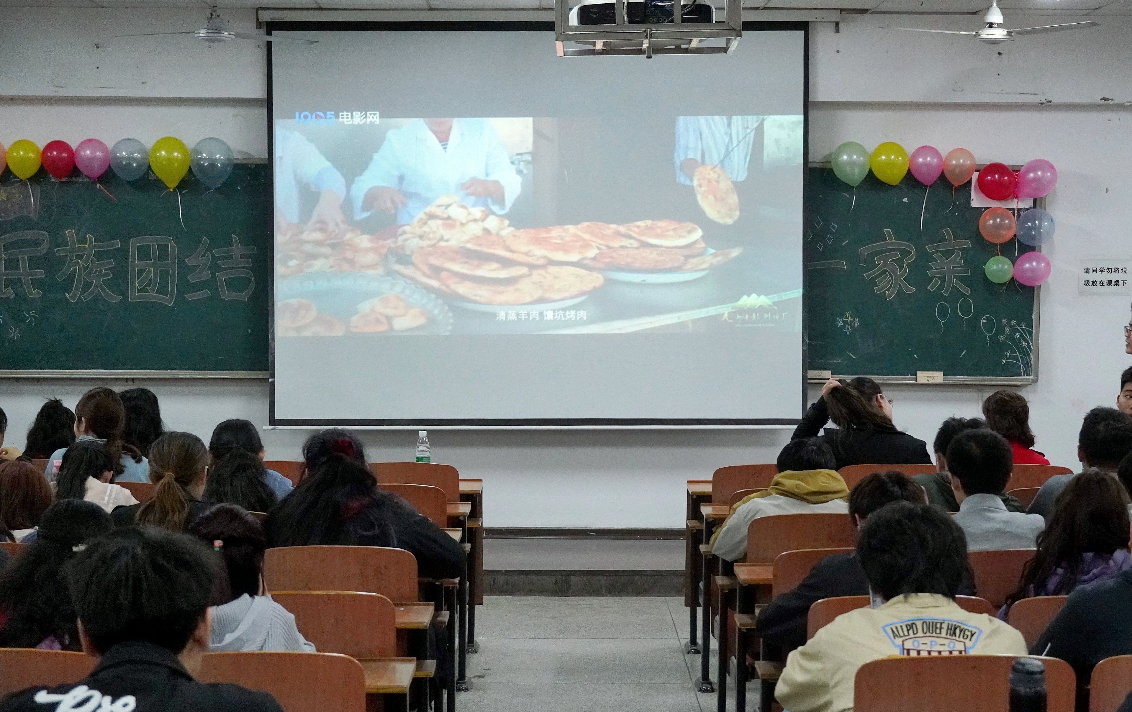 活动开始,同学们观看学习“习近平总书记在参加十三届全国人大第四次会议 内蒙古代表团审议时的讲话”。习近平总书记指出:“少数民族离不开汉族,汉族也离不开少数民族,各民族要像石榴籽一样紧紧抱在一起。”接着古力亚同学向同学们介绍了艾德莱斯丝绸的小知识、并与6名维吾尔族同学跳起了欢快的舞蹈,娜黑拉同学带来哈萨克族独舞《黑走马》。两位汉族同学带来汉服展示,并介绍了汉服的历史和分类。同学们通过服饰与舞蹈表现出了各民族对美好生活的期盼与热爱,使同学们感受到各民族文化的交融与碰撞。最后,同学们共同观看纪录片《中国历史之新疆印记》。主持人对片中的内容进行了提问,现场同学踊跃抢答,气氛热烈,体现了同学们对中华民族团结奋斗、繁荣发展的时代主题的认识。