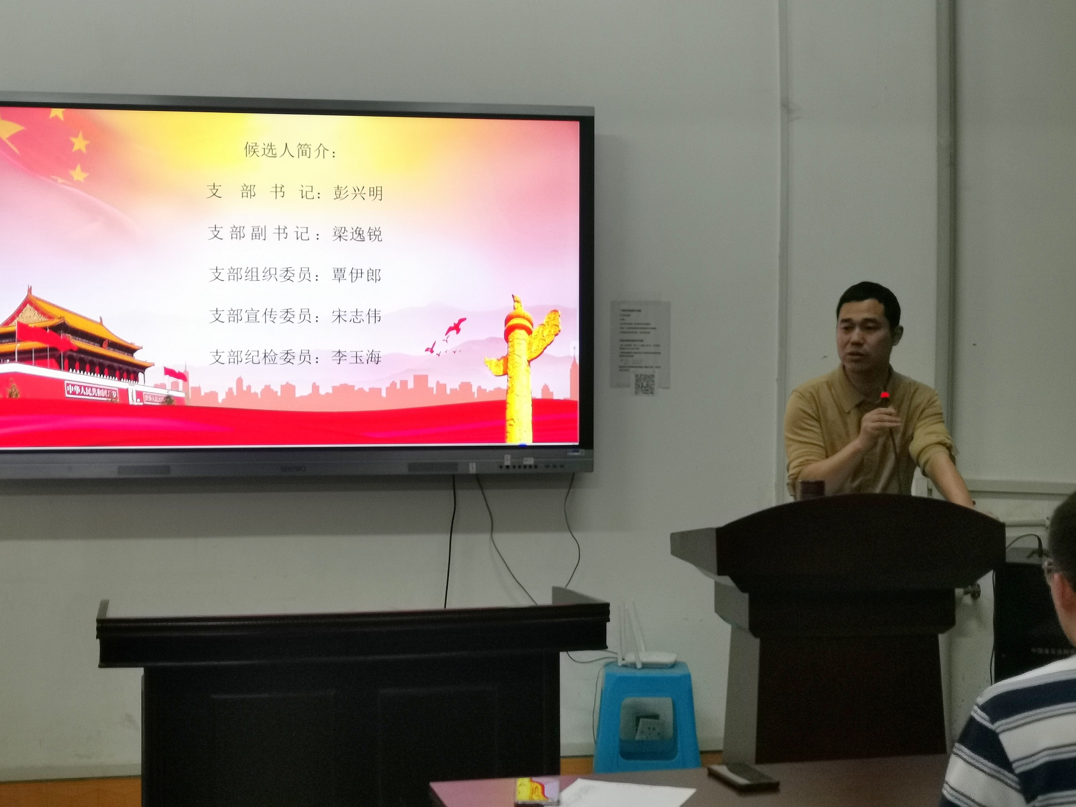 大会第二环节,经在座党员表决无异议后,确定支部委员替补人员:梁逸锐为支部副书记、覃伊郎为组织委员、宋志伟为宣传委员、李玉海为纪检委员。