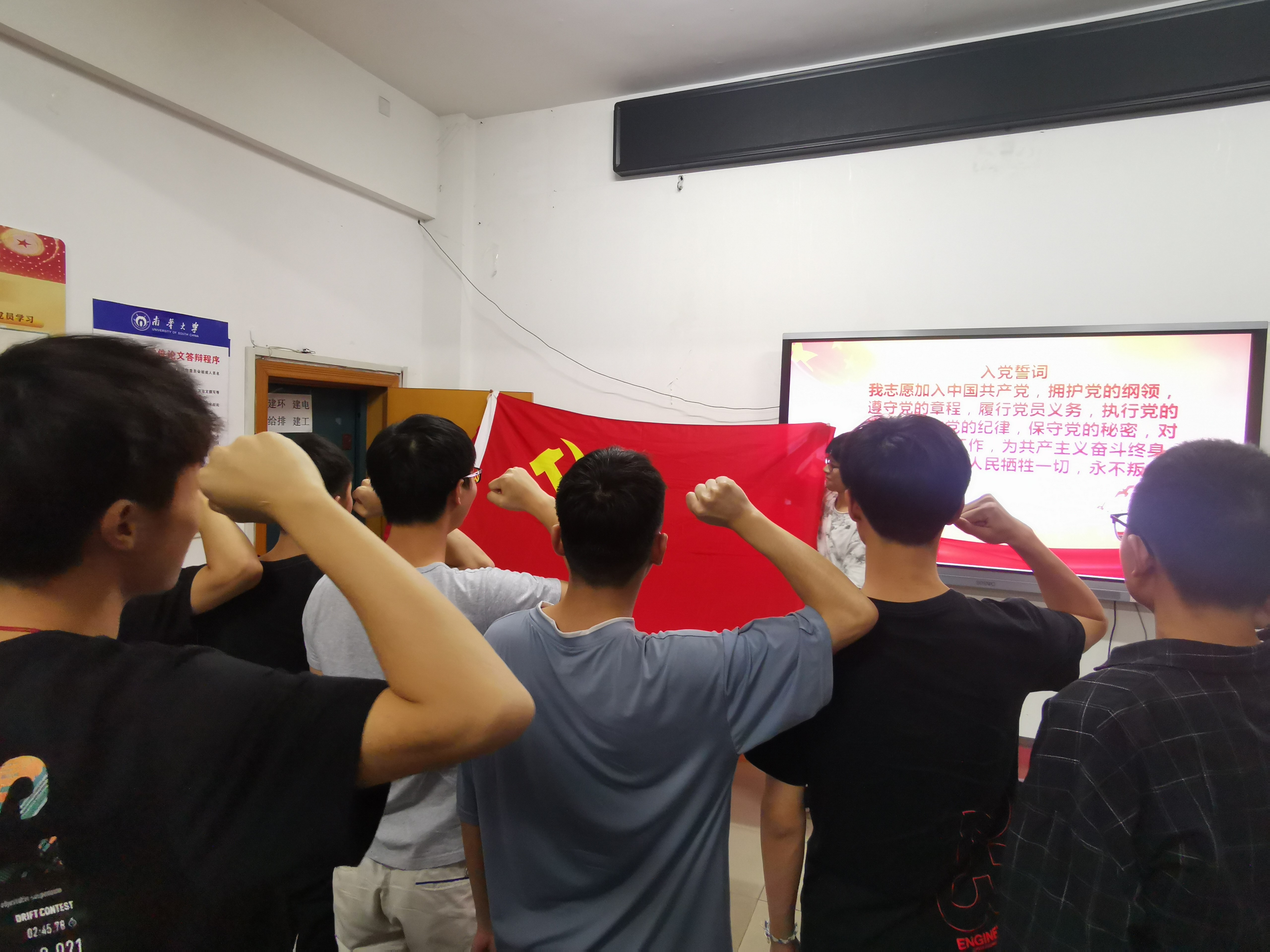 大会最后,党支部书记彭兴明老师带领全体与会党员郑重宣誓,并叮嘱新的支委成员再接再厉,建设起一个更好的建工学生党支部。