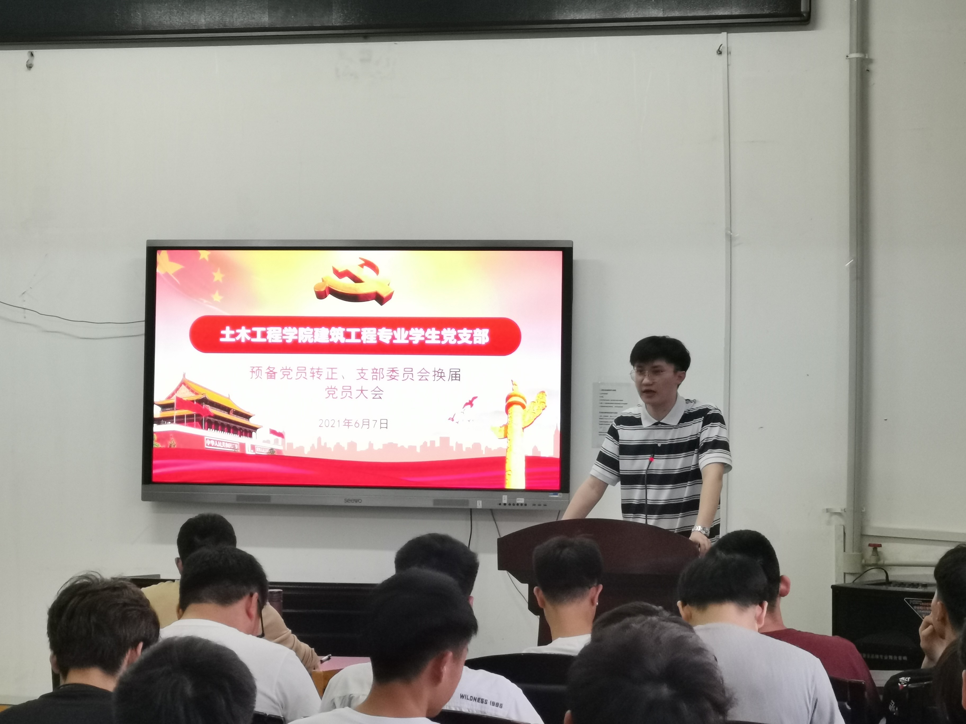 为推动党支部建设,伟德国际1946建筑工程专业学生党支部于2021年6月7日晚上18:30在土木楼四楼会议室召开党员大会,讨论转正以及委员替补问题。党支部书记彭兴明老师及全体学生党员同志参加会议。