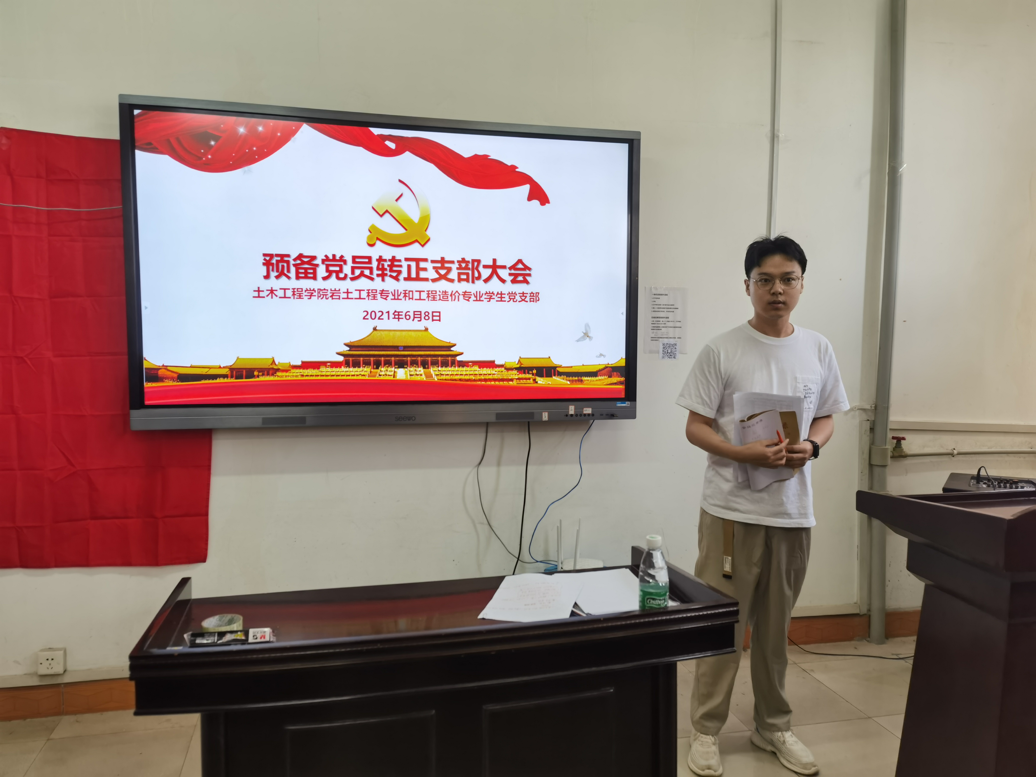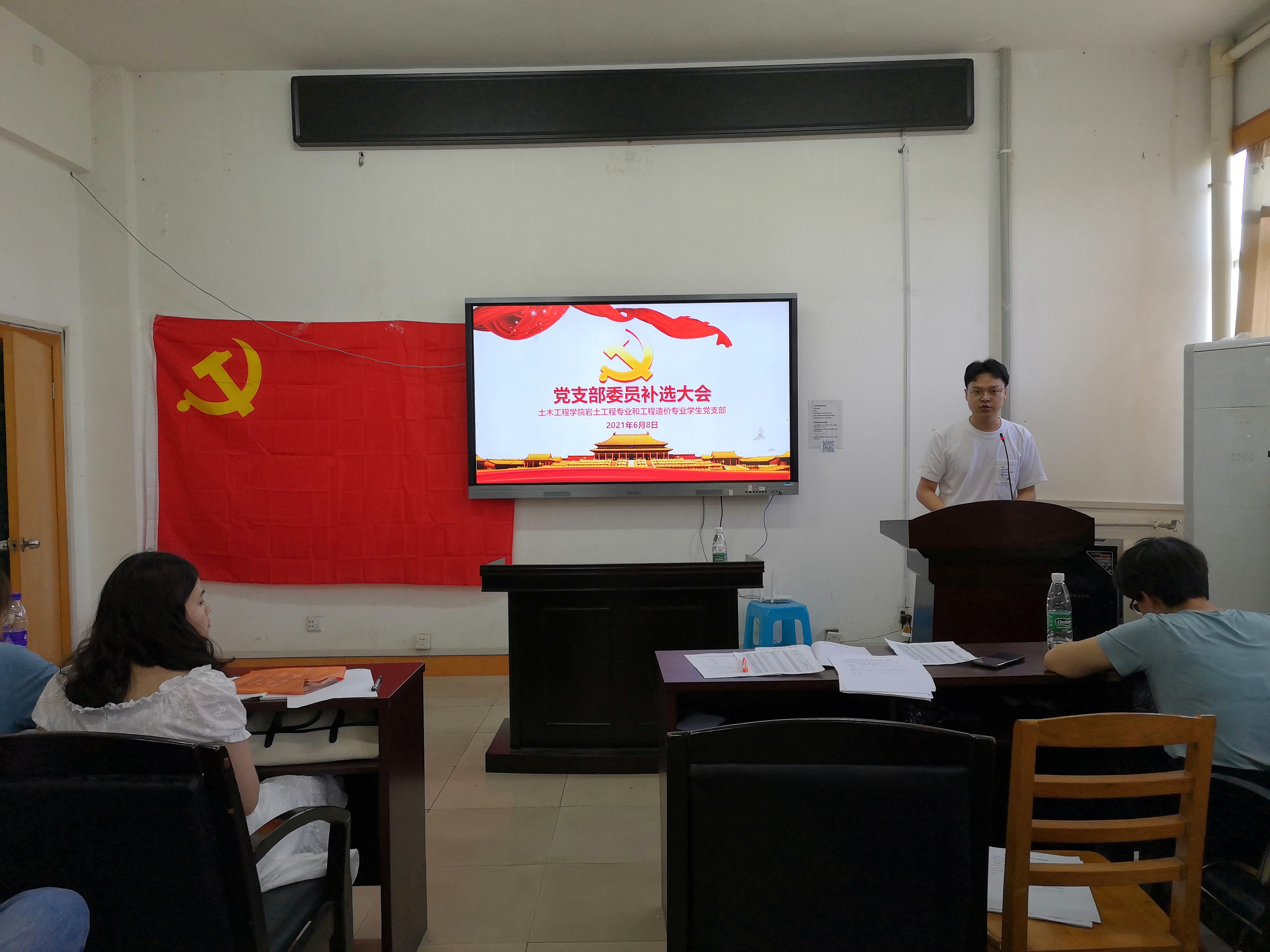 2021年6月8日9:00,伟德国际1946岩土工程专业和工程造价专业学生党支部在土木楼四楼会议室召开预备党员转正大会暨支部委员补选大会,会议由支部副书记屈海朋主持,支部全体党员参加了会议。大会讨论了关于卢尚文等9名同志是否按期转正及补选支部委员的问题。