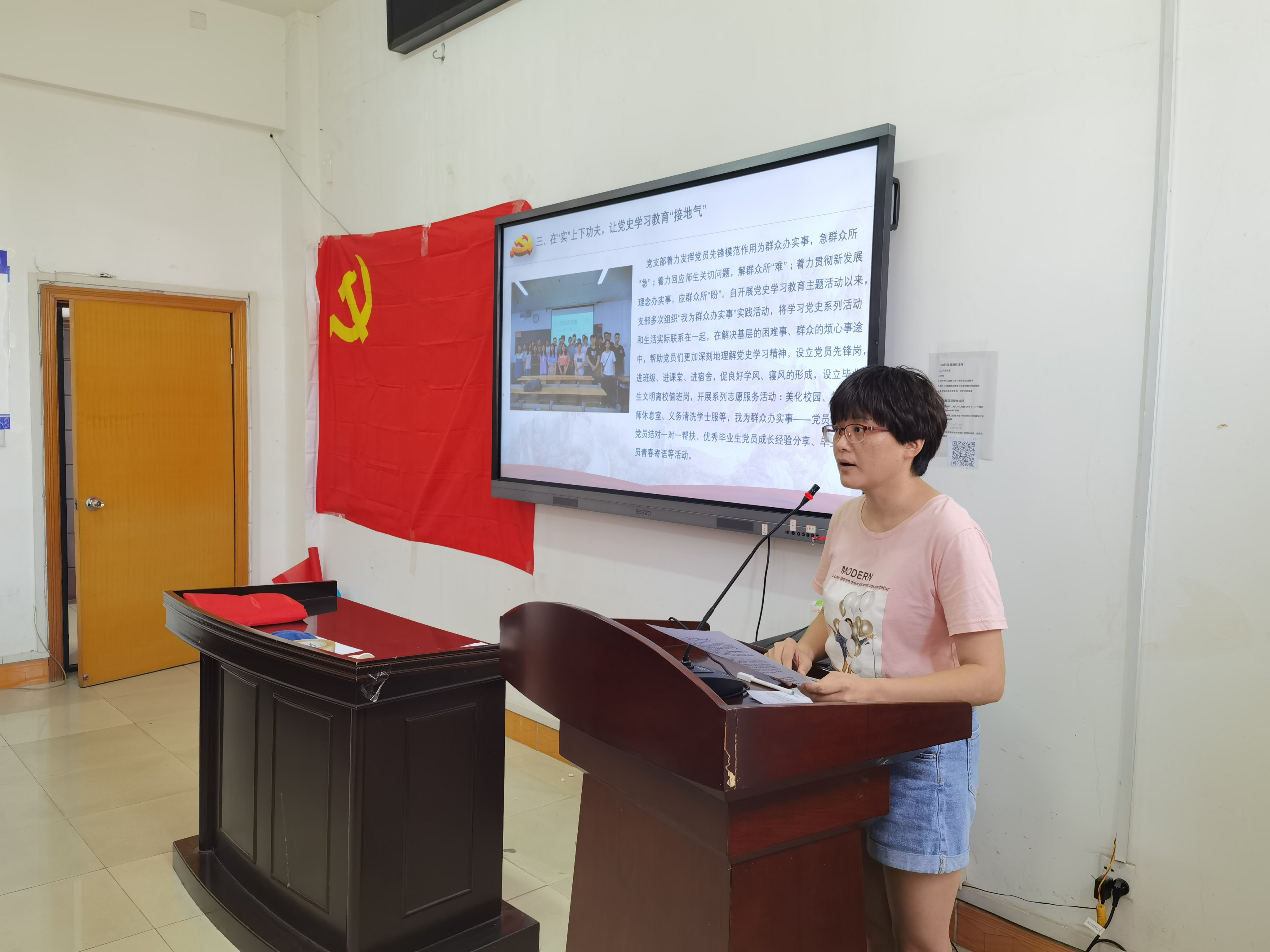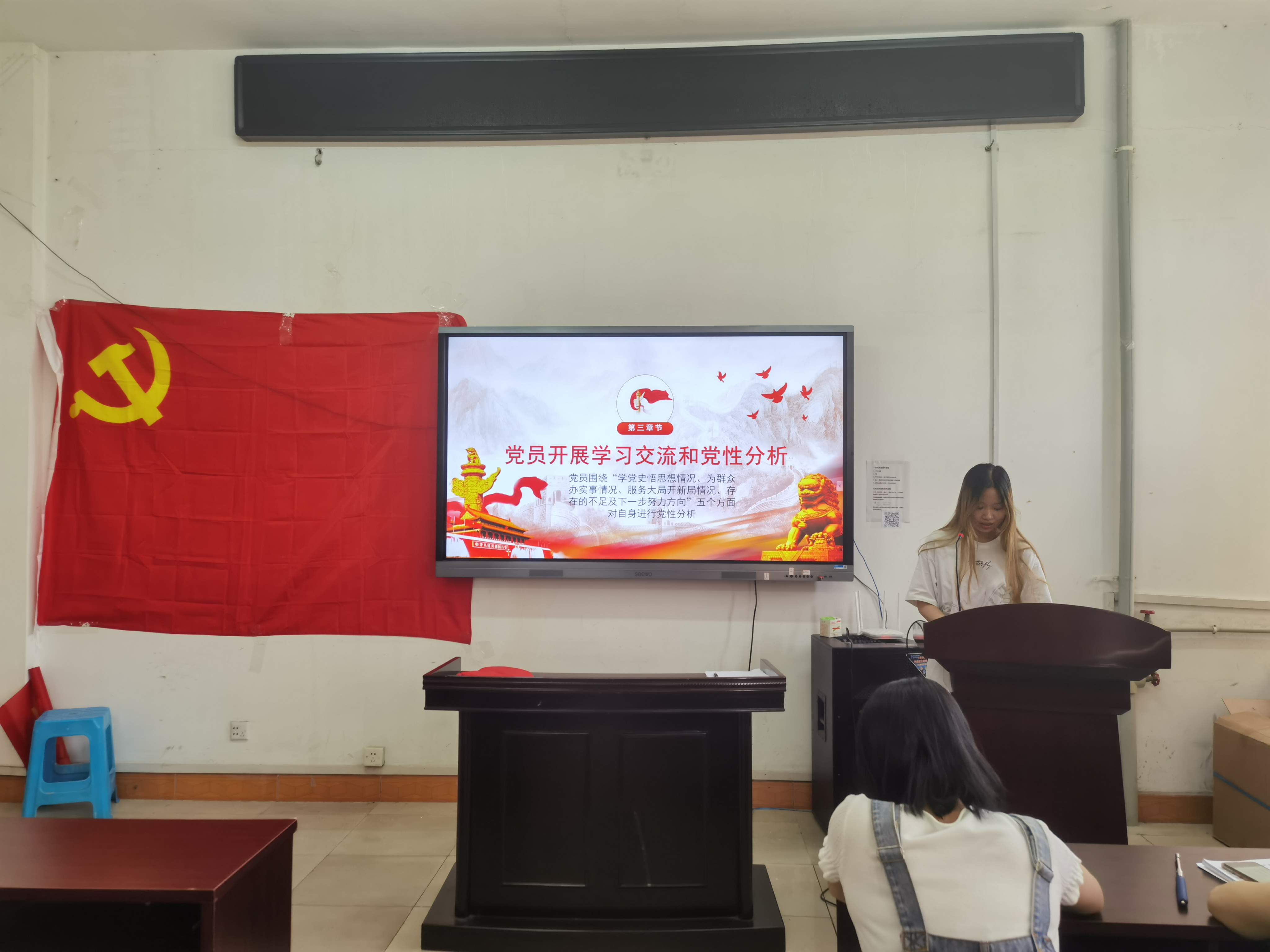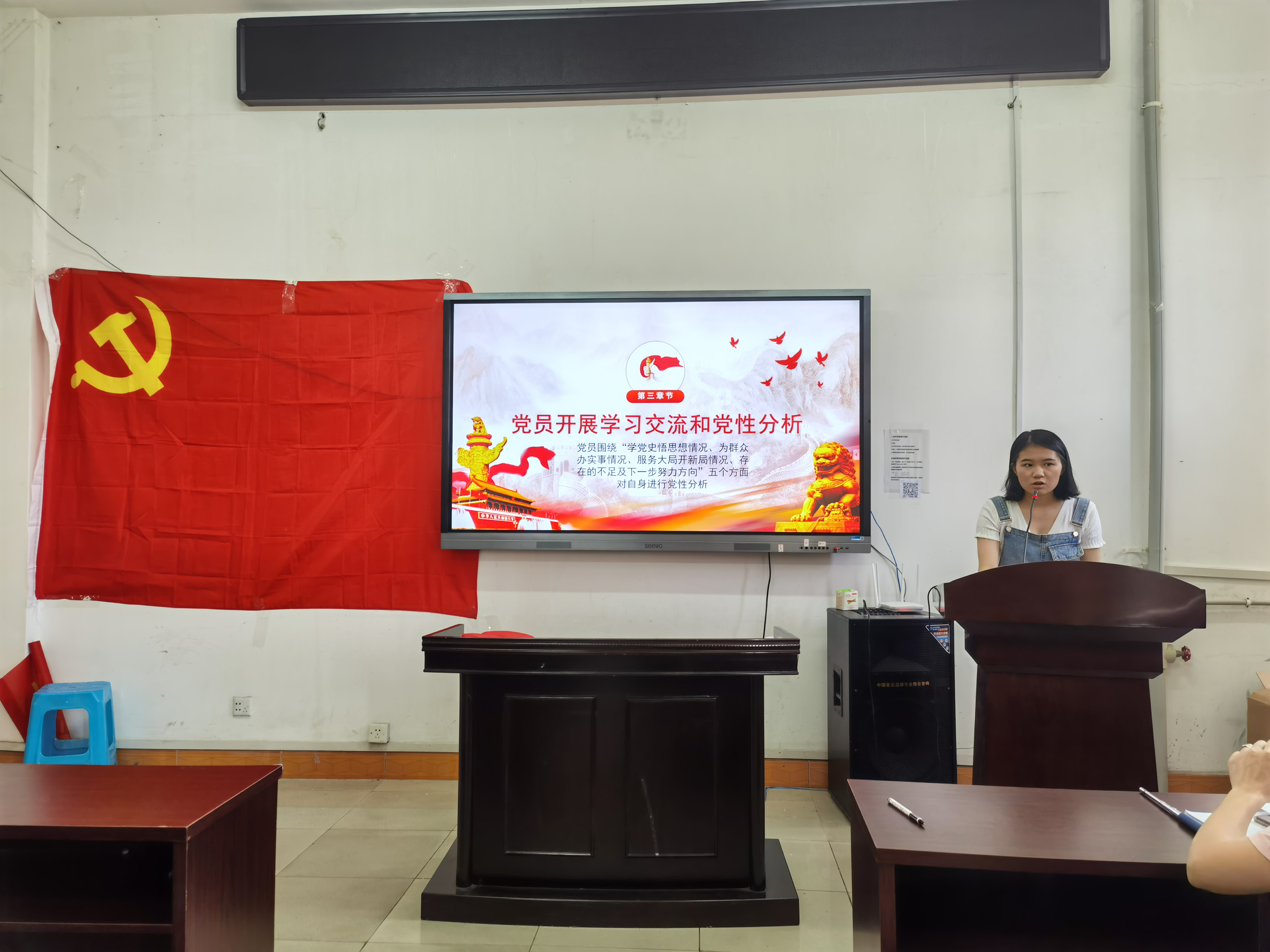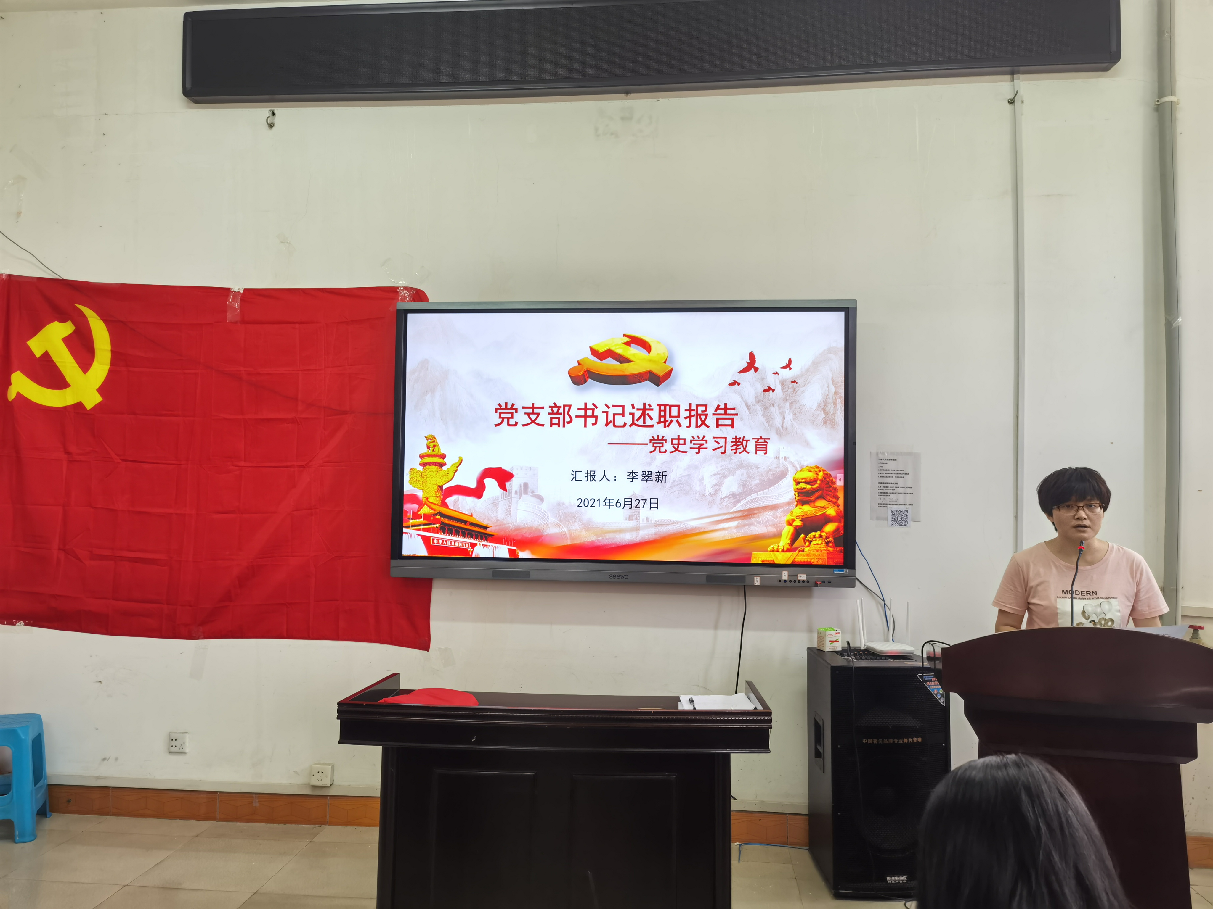 首先,支部书记李翠新老师带领全体党员重温入党誓词。随后,支部书记李翠新老师进行述职,从“学”“悟”“实”三个方面报告了党支部开展党史学习教育的情况,并代表支部进行对照检查,检视存在的问题和不足,带头开展自我批评。接着,与会党员围绕“学党史悟思想情况、为群众办实事情况、服务大局开新局情况、存在的不足及下一步努力方向”这五个方面开展学习交流和党性分析,深入开展批评与自我批评,找出自身突出的问题,相互提出意见和建议,并在未来的学习生活中予以改正。最后支部书记李翠新老师进行点评总结:全体党员围绕主题,查找问题,既聚焦自己,也真诚地帮助别人,达到了交流思想、改进工作的目的。希望全体党员以此次组织生活会为契机,下一步继续深化党史学习,学出认识,学出精神,学出情怀,学出担当。强化党员的责任与担当,发挥党员的引领作用,加大为民办实事的力度,扎实开展好各项工作。会上,支部书记还强调了暑期学生管理及安全问题。会议到此圆满结束。