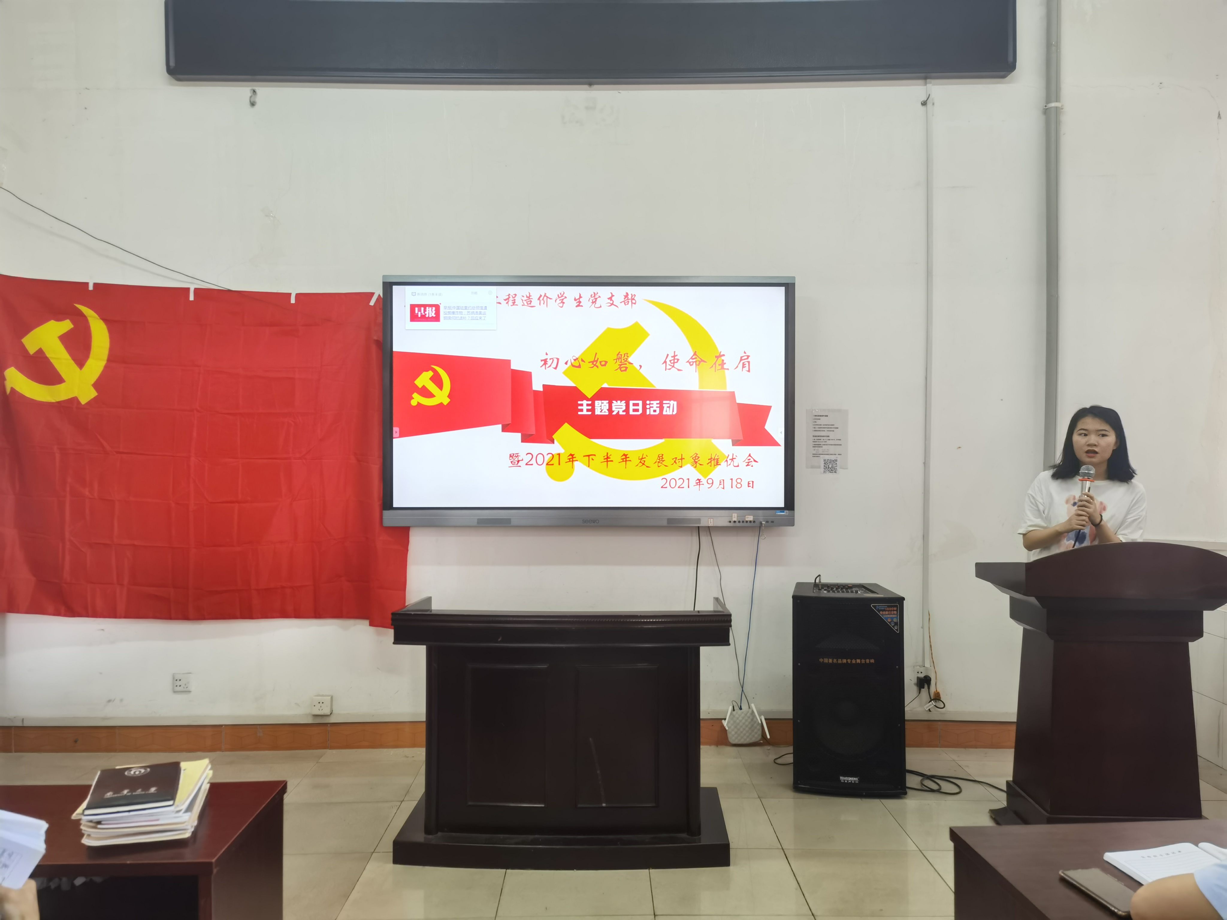 2021年9月18日上午9:00,伟德国际1946岩土工程专业和工程造价专业学生党支部于土木楼四楼会议室开展“初心如磐,使命在肩”主题党日活动,活动由支部副书记谢倩兰同志主持,支部书记李翠新老师和全体党员参加。