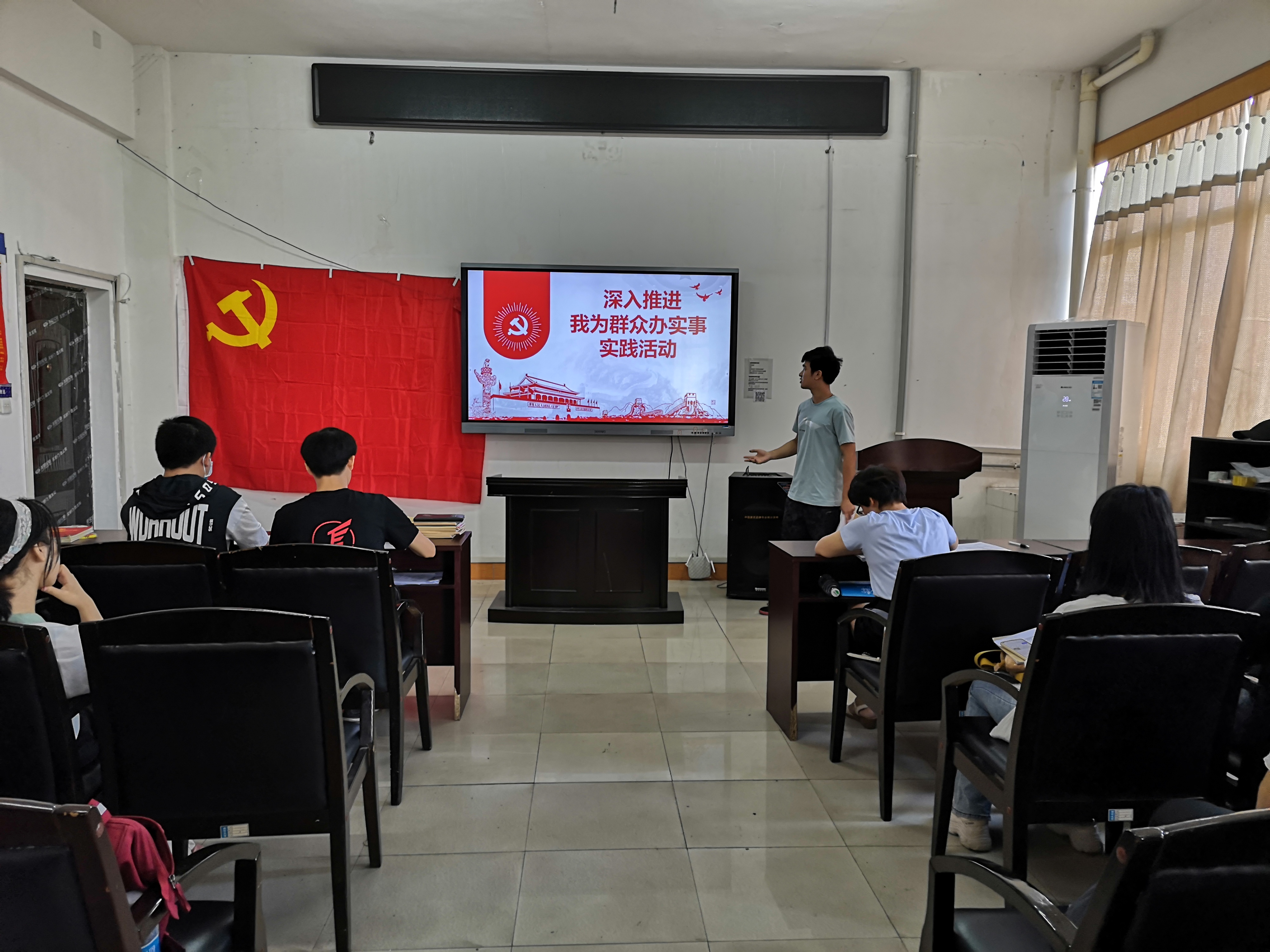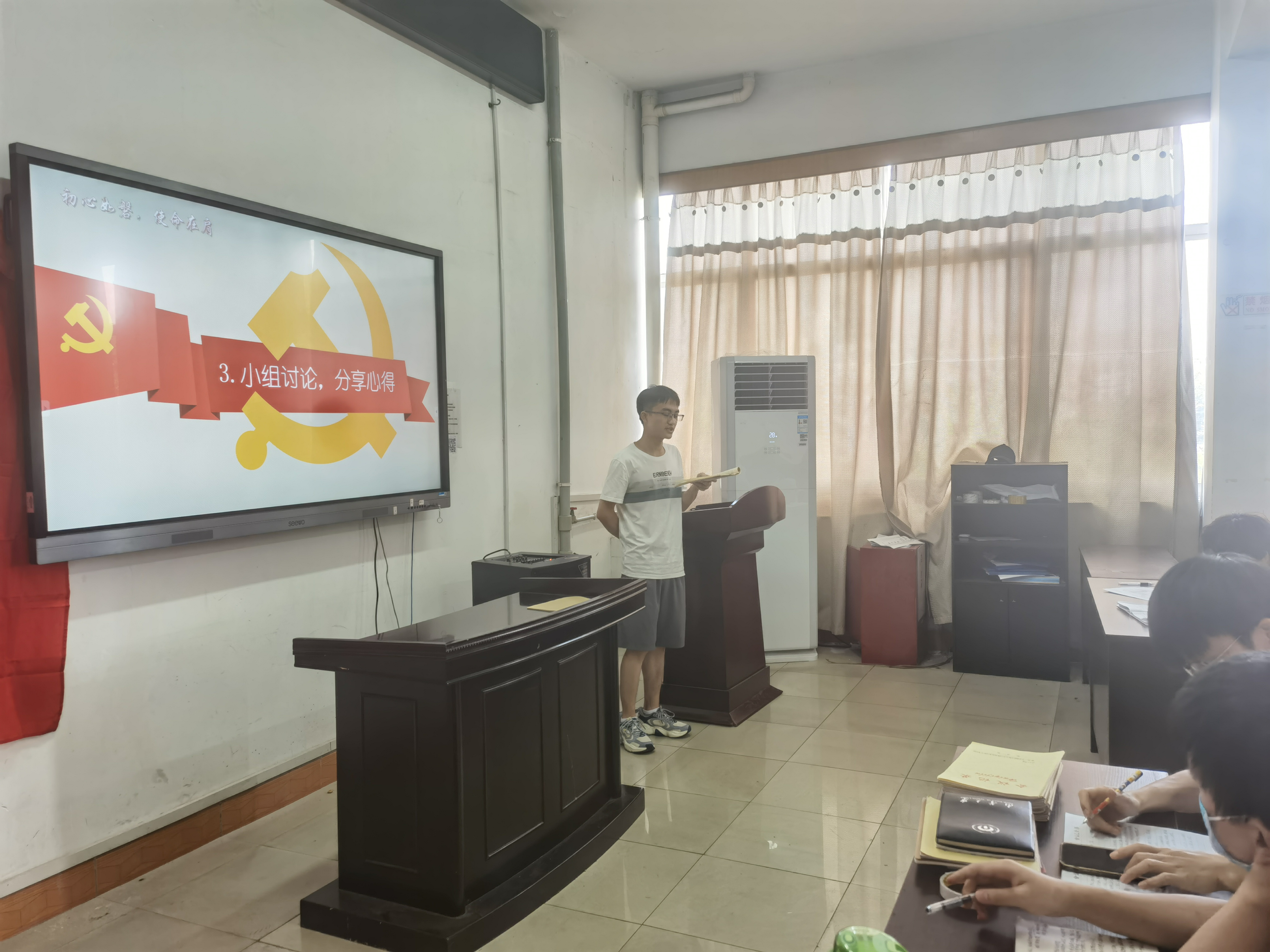 首先,全体党员通过马龙、杨倩两位运动员专访,学习奥运榜样精神,由此激励党员更加努力学习,拥有自强不息的精神。紧接着由谌琪欣、尹琦洋两名同志进行领学,集中学习了习近平总书记在中央党校(国家行政学院)中青年干部培训班开班式上的讲话内容和《关于深入推进“我为群众办实事”实践活动的通知》;随后进行小组讨论并交流分享学习心得,提出青年一代党员要意识到自身的历史担当和民族重任,发挥先锋模范作用,从群众中来,到群众中去,立足实际,真正为群众做实事。