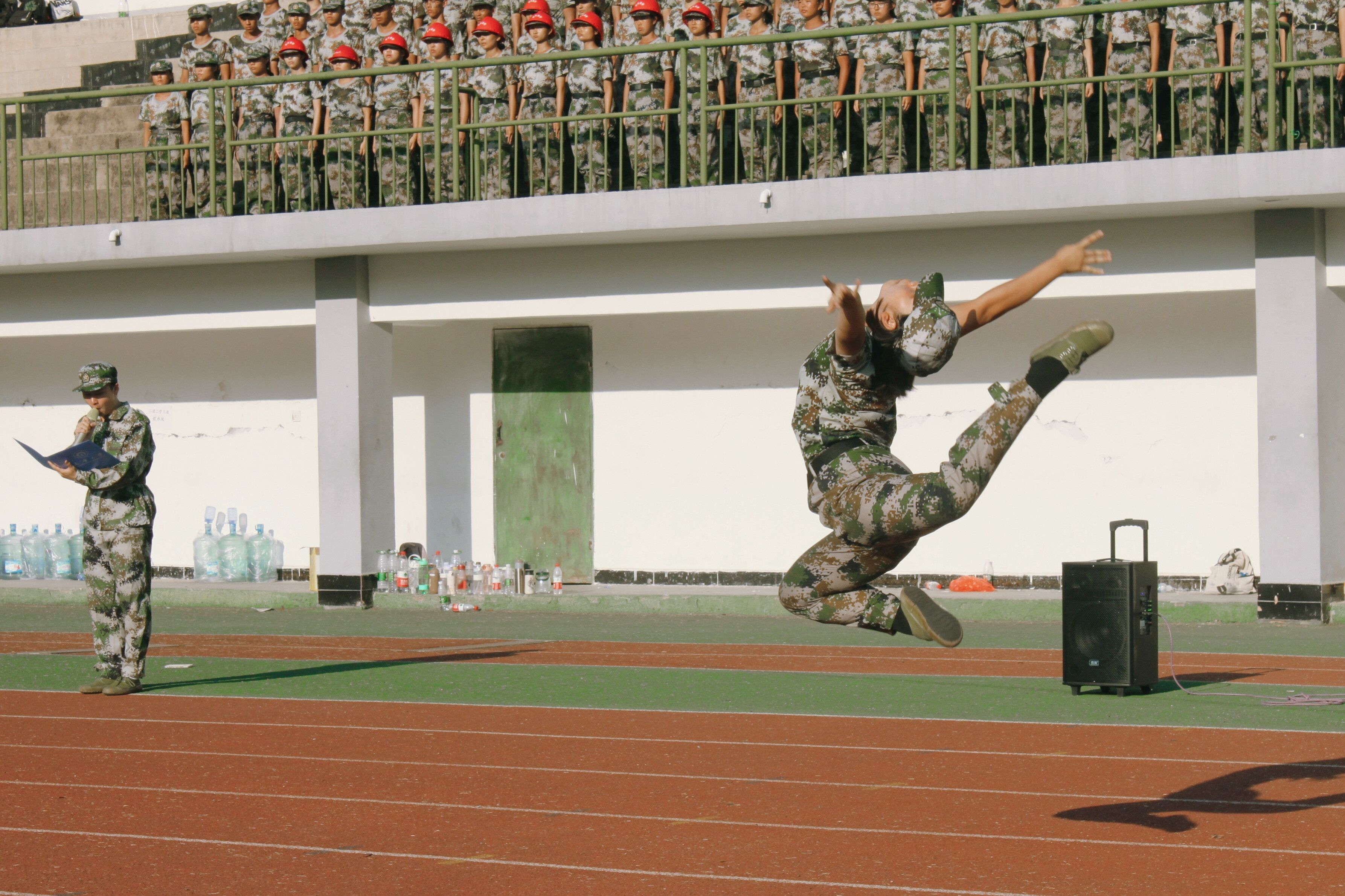 比赛初,全体人员起立,齐唱伟德国际victor1946校歌。伟德国际1946第二位出场,表演初,由欧阳欣宜和张成隆两位同学进行朗诵,同时院大艺团舞蹈队带来表演《书的流离》,以百年征程提醒同学们不忘初心、牢记使命、努力奋斗、争创一流。在张孝磊老师高喊一声“爱我中华,兴我南华”口号后,新生们用红色安全帽摆出“土木100”字样,伟德国际1946的合唱表演正式开始。