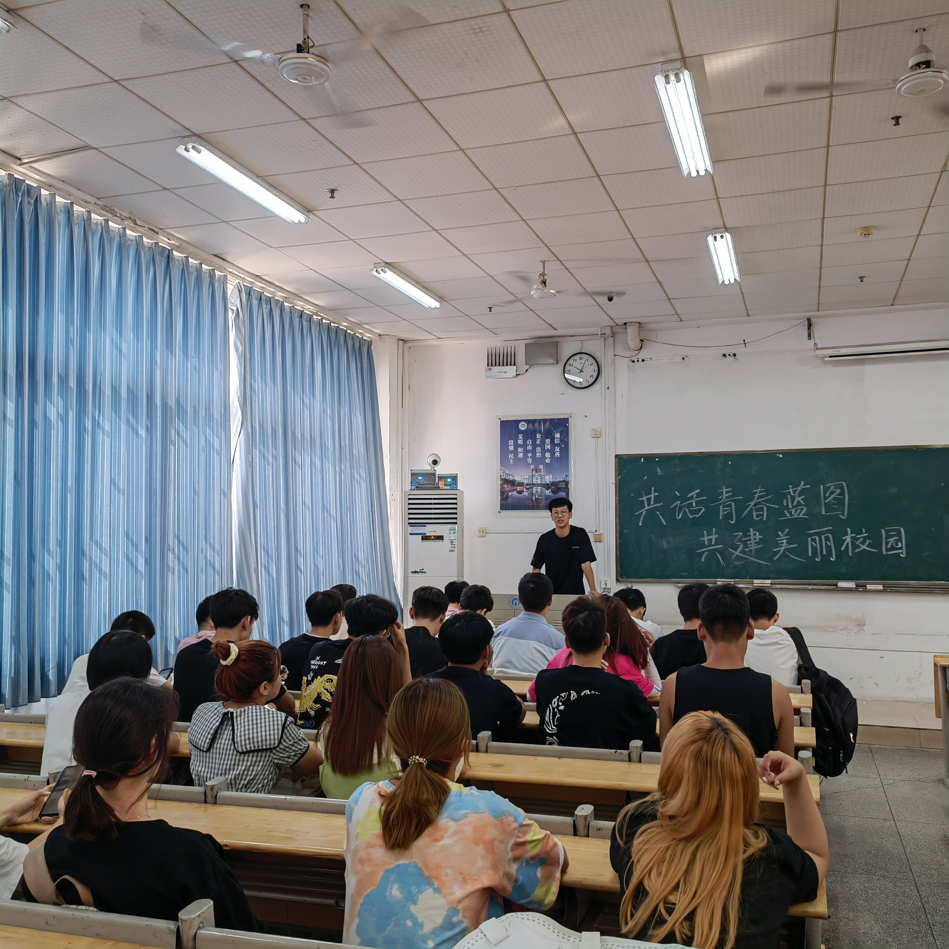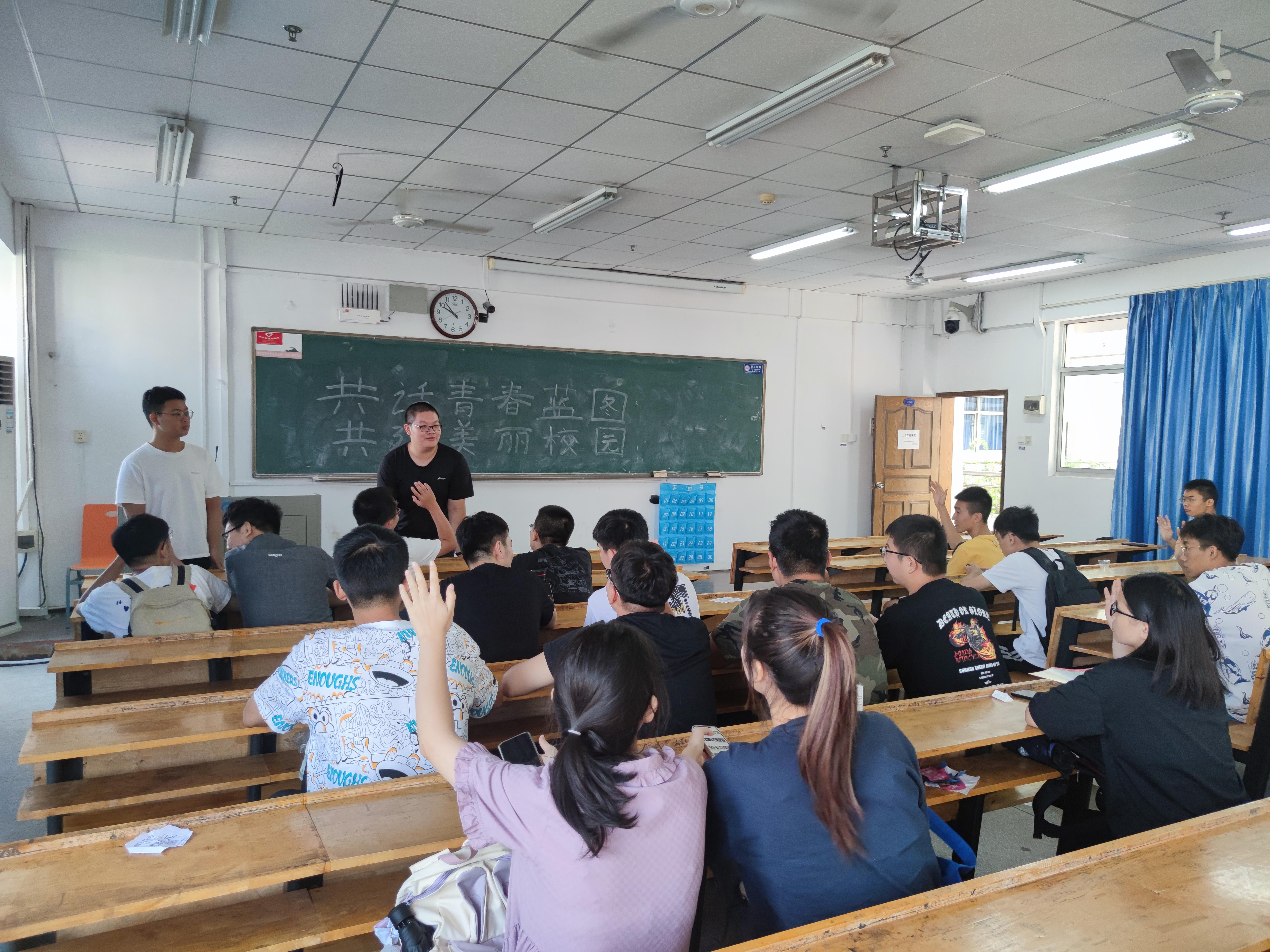 首先各班对先前班级工作进行总结,对班级学风、学业问题进行分析,同时制定本学期的班级工作计划,明确学习任务,确定学习目标。紧接着,各班根据美丽、平安中国建设,绿色环保等发展理念,结合当前校园环境建设情况,开展了重温校纪校规、爱校荣校教育,并引导同学们自觉维护校园秩序,以实际行动参与创建美丽、绿色、平安校园。最后,各班级教育引导同学们要做到常态抗疫不放松,自觉遵守各项管理规定,坚持每日健康打卡,实现疫苗“应接尽接”。