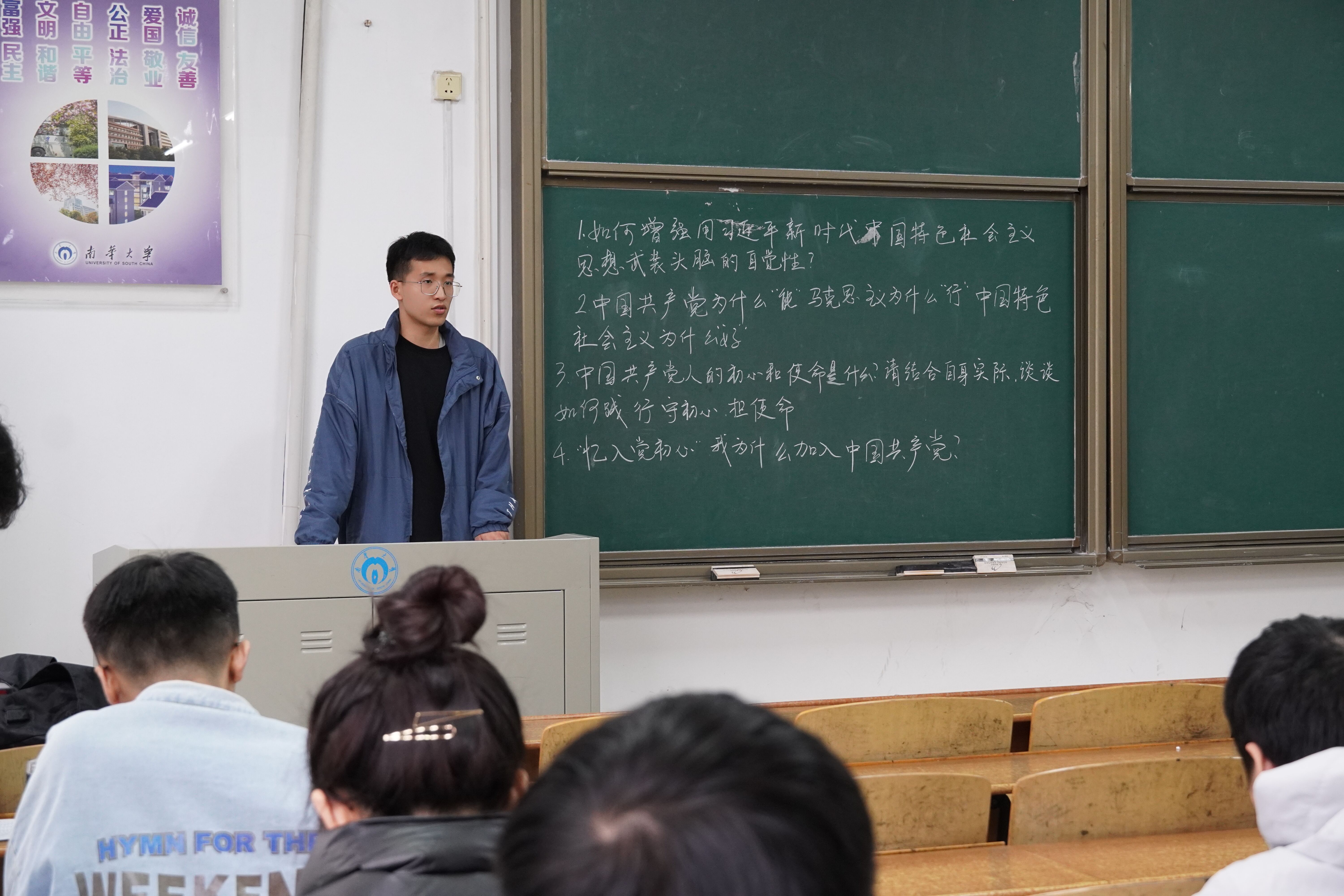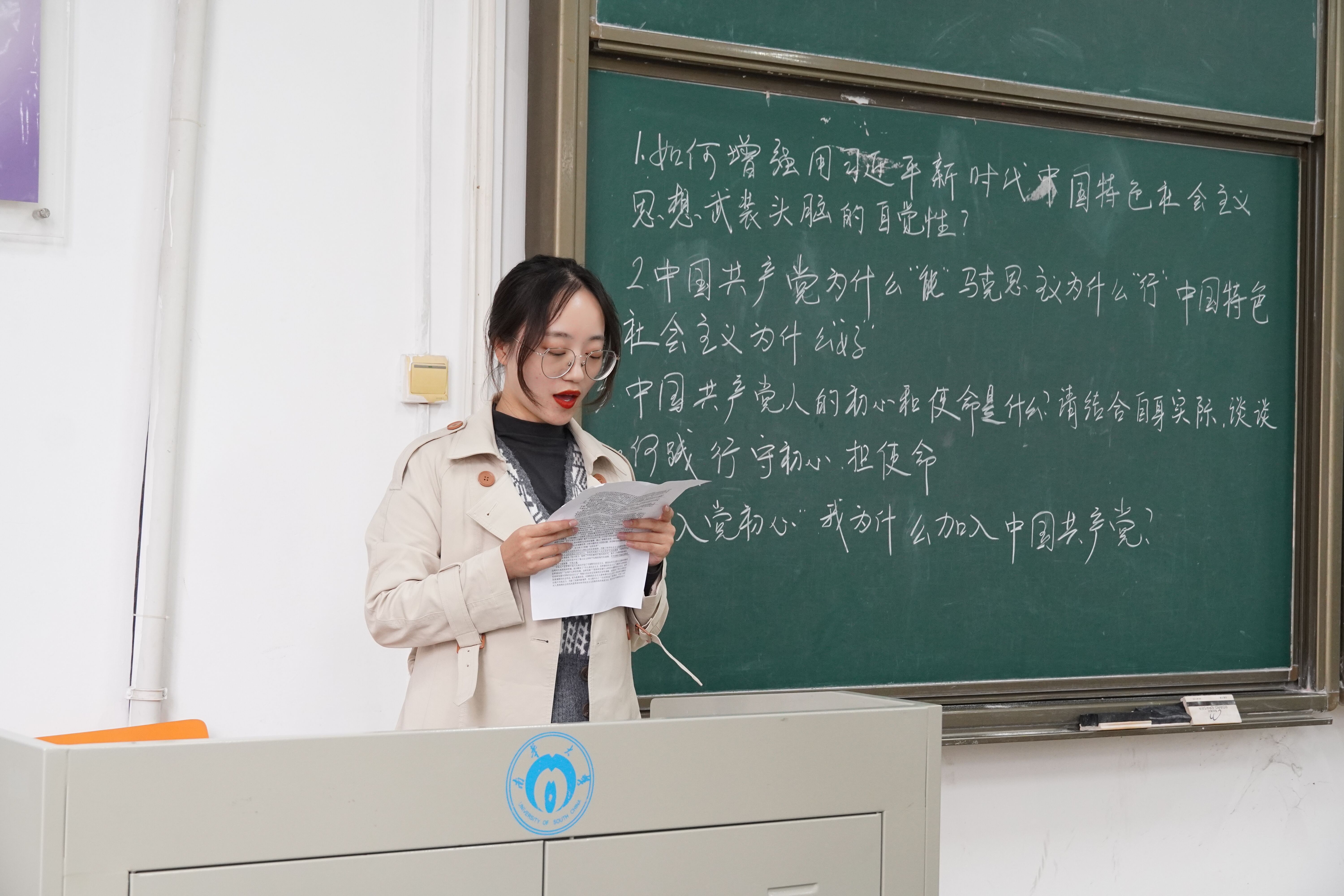 此次会议以分组讨论、个人阐述为主要形式,全体学员围绕“如何增强用习近平新时代中国特色社会主义思想武装头脑的自觉性”“中国共产党为什么‘能’,马克思主义为什么‘行’,中国特色社会主义为什么‘好’”“结合自身实际,谈谈如何践行守初心、担使命”以及“忆入党初心,我为什么加入中国共产党”四个问题,展开热烈的讨论交流。讨论时,每位学员都结合党的理论知识,联系自己的工作和生活实际,现场讨论氛围热烈。其中道桥建电支部的王芯蕊同学认为要用党的理论创新,引领各方面创新,不断赋予当代中国马克思主义鲜明的实践特色、民族特色和时代特色。研究生学员代表冯梦雅同学认为要担负起党和人民赋予的历史重任,牢固树立对党和国家的忠诚,对社会的责任,主动将个人的奋斗融入国家和民族的奋斗大潮中。其他支部的学员代表也纷纷上台发言,各抒己见,多角度切入主题。