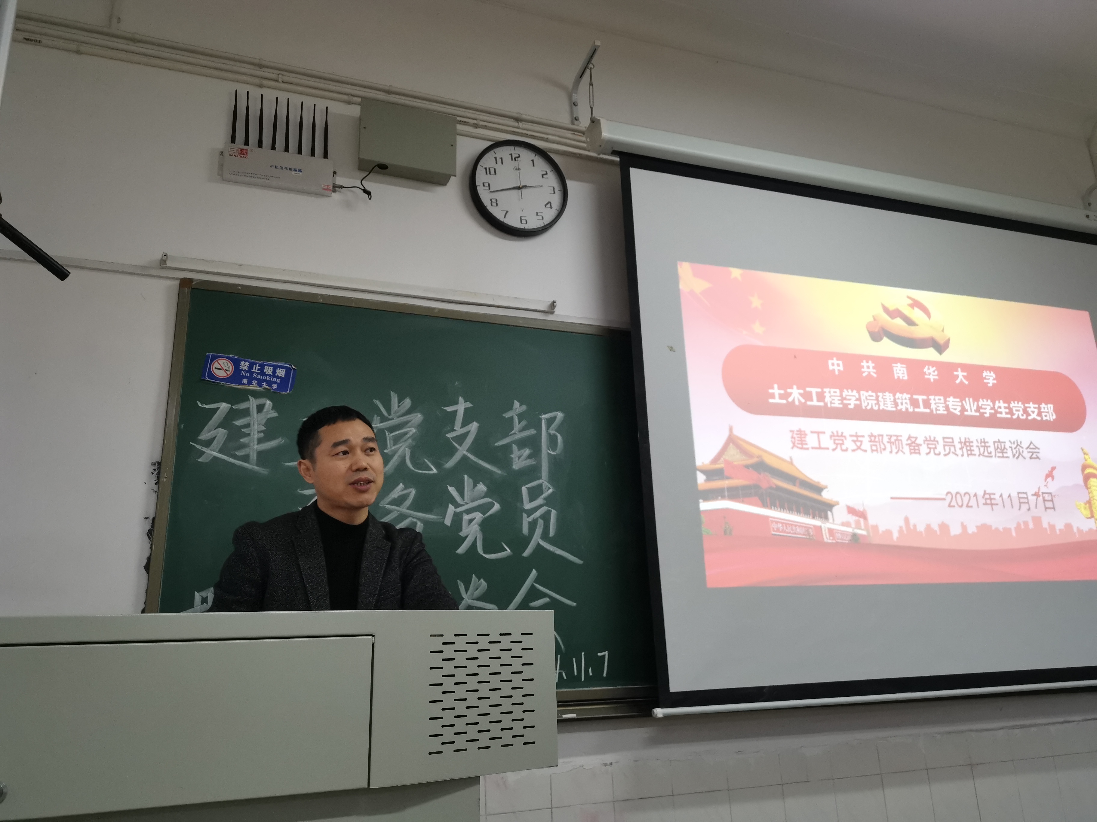2021年11月7日下午2:30,为吸收优秀同志进入党组织,增强党的影响力和凝聚力,建筑工程专业学生党支部于核学楼303召开发展对象推优会议。学生党支部书记彭兴明老师、支部全体学生党员、发展对象以及各班群众代表参加会议。