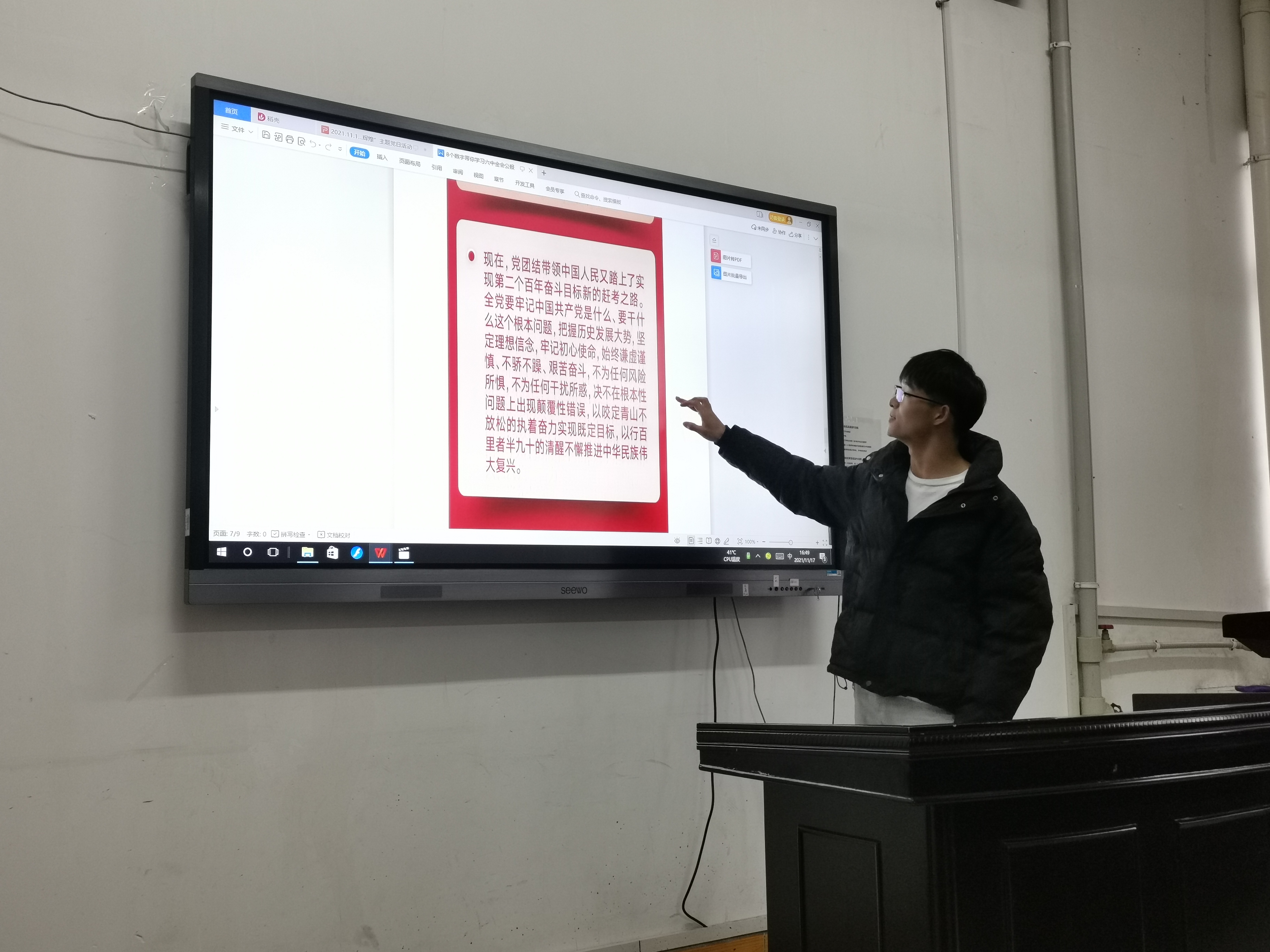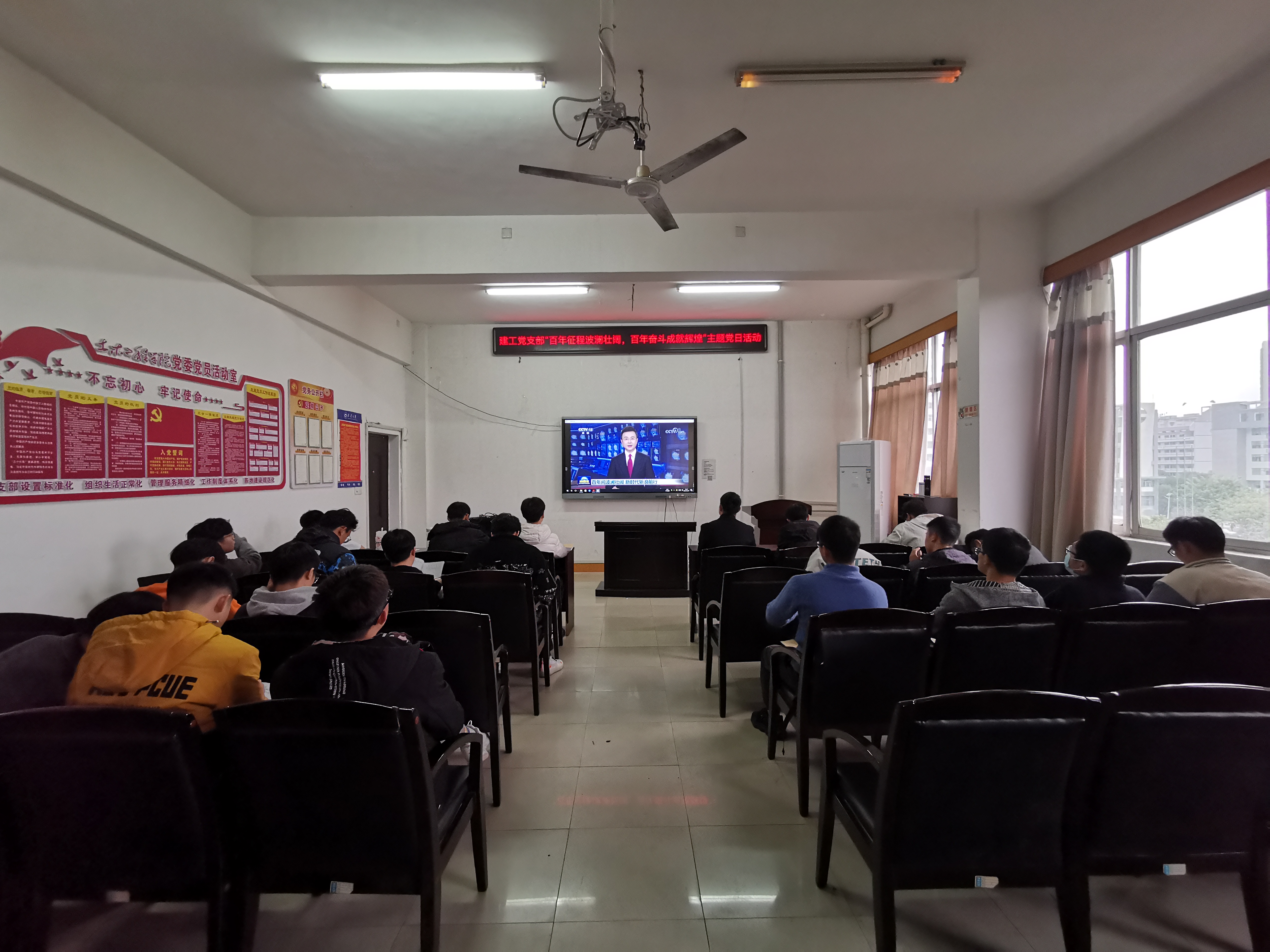为深入学习党的第十九届六中全会精神2021年11月17日16:30,伟德国际1946建筑工程专业学生党支部以“百年征程波澜壮阔,新时代斩浪前行”为主题,开展主题党日活动,活动由支部书记彭兴明老师主持,全体党员参加。