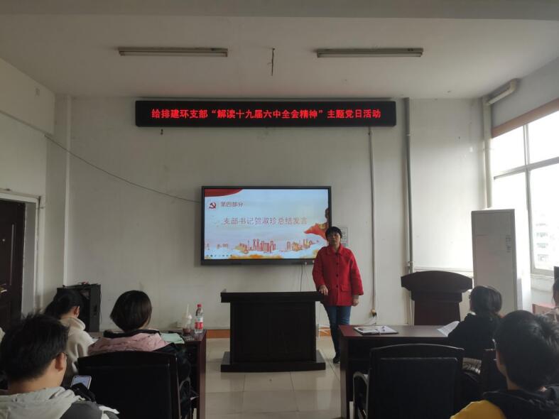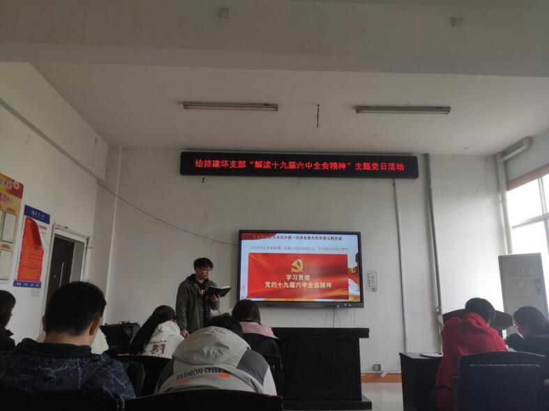2021年11月23日,伟德国际1946给排建环专业学生党支部在土木楼四楼会议室开展了党日活动。与会人员有给排建环专业学生党支部书记贺淑珍、给排建环专业全体党员。本次活动主题为“深入贯彻学习中国共产党第十九届中央委员会第六次全体会议主要精神”。会议由支部书记贺淑珍老师主持。