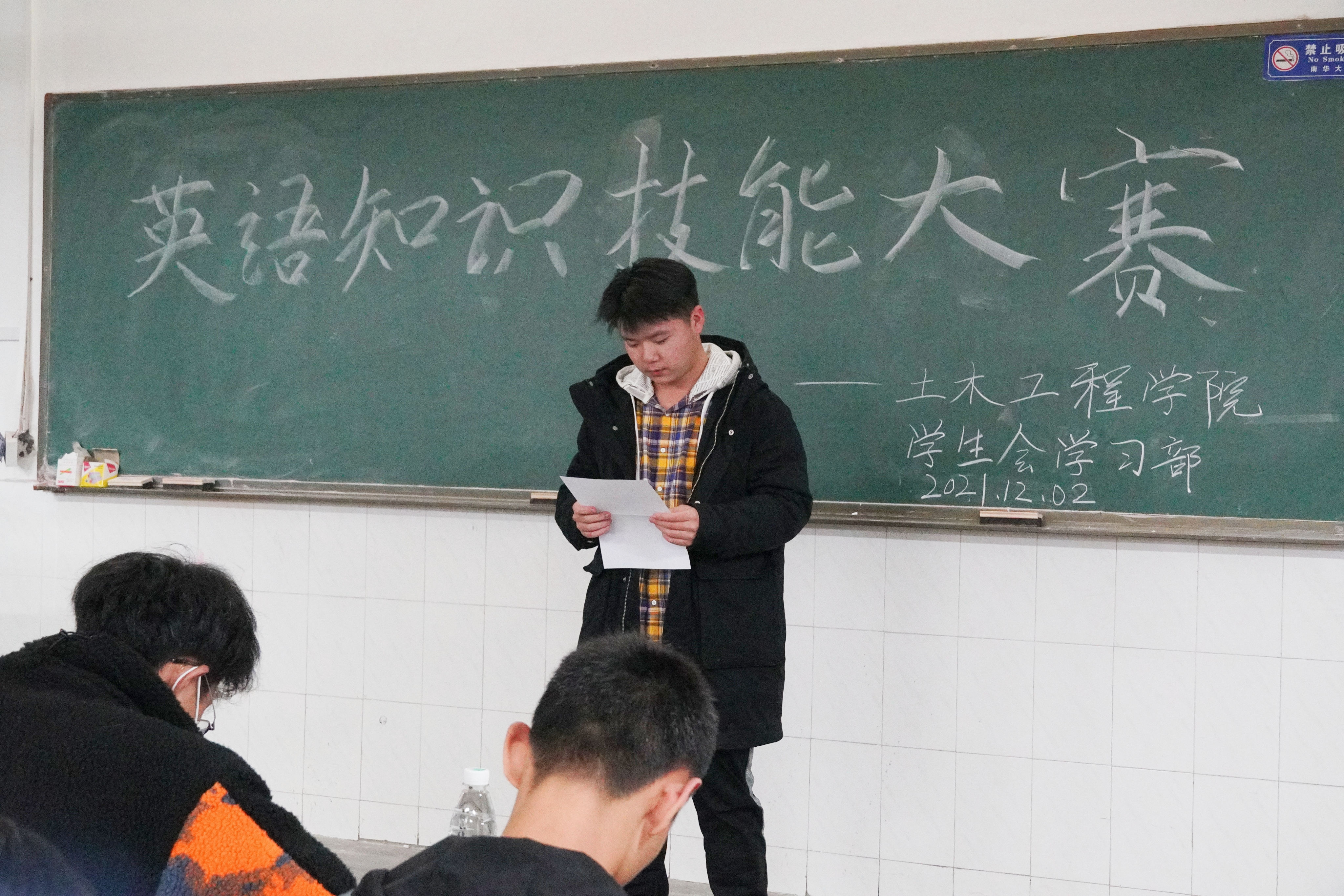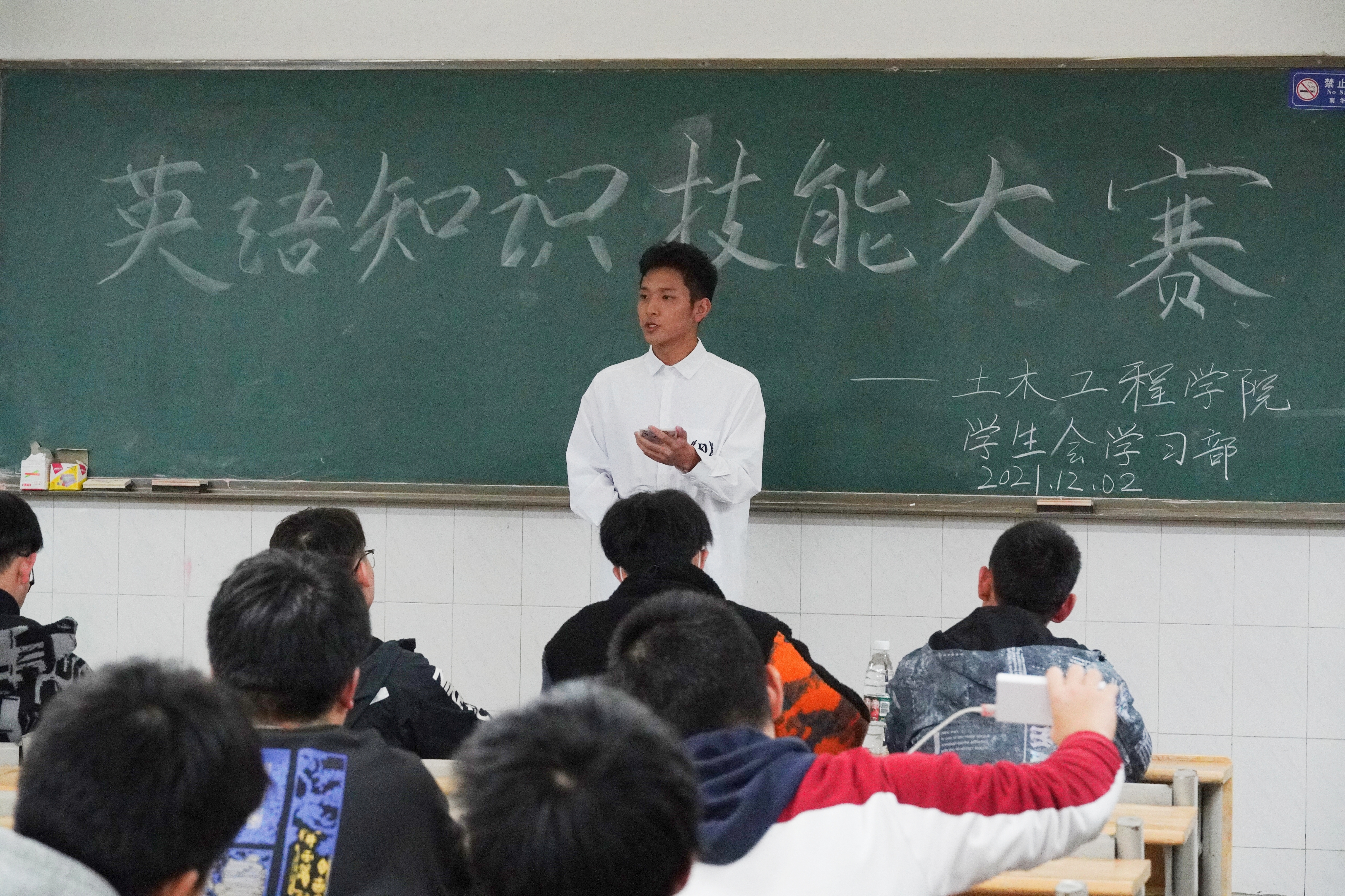 2021年12月2日晚7点,伟德国际1946于核学楼四楼举办英语知识技能大赛。三个教室分别由唐李伟、沃屹坤和龚俊主持。本次活动邀请院团委、学生会各部门代表作为评委,19、20、21级部分同学参与了本次活动。