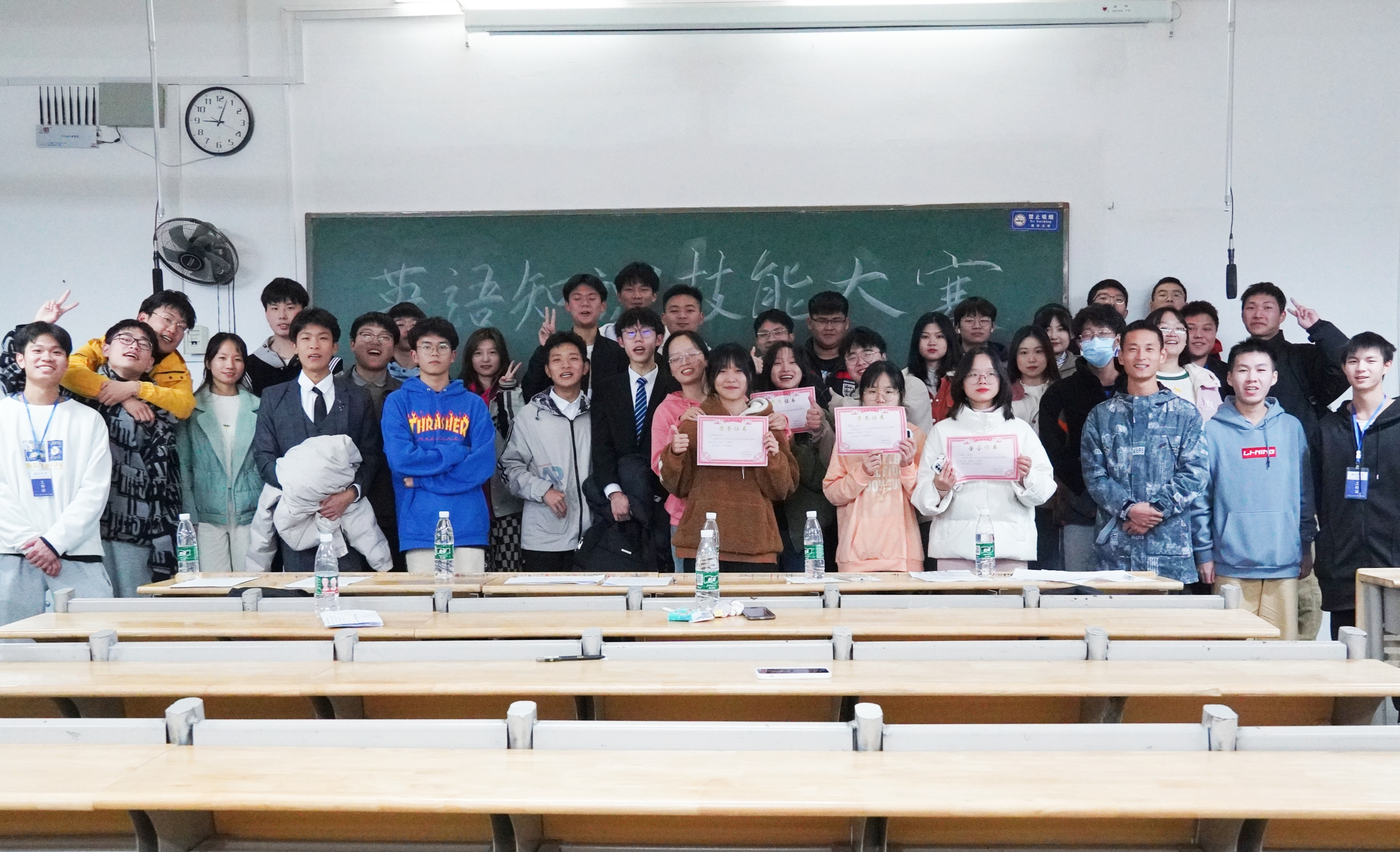 活动伊始,主持人宣布比赛流程及规则。各位选手按英语自我介绍、段落速读及情景模拟三个环节依次进行。比赛中,参赛选手们充分展现自己丰富的英语知识,活用自己的英语技能,赢得场下掌声不断。在各教室比赛都进行完后,工作人员进行成绩评定,并组织大家于407教室进行颁奖。本次英语知识技能大赛一等奖获得者为沈梦琪、刘芸宏和彭珊珊;二等奖获得者为刘远征、滕晓烨、李妲婕和贺卓智;三等奖获得者为文怡、李运动、黄燕姿、姜晏晨和李秀文。最后,全体参赛选手和工作人员进行合影留念。至此,伟德国际1946英语知识技能大赛圆满结束。