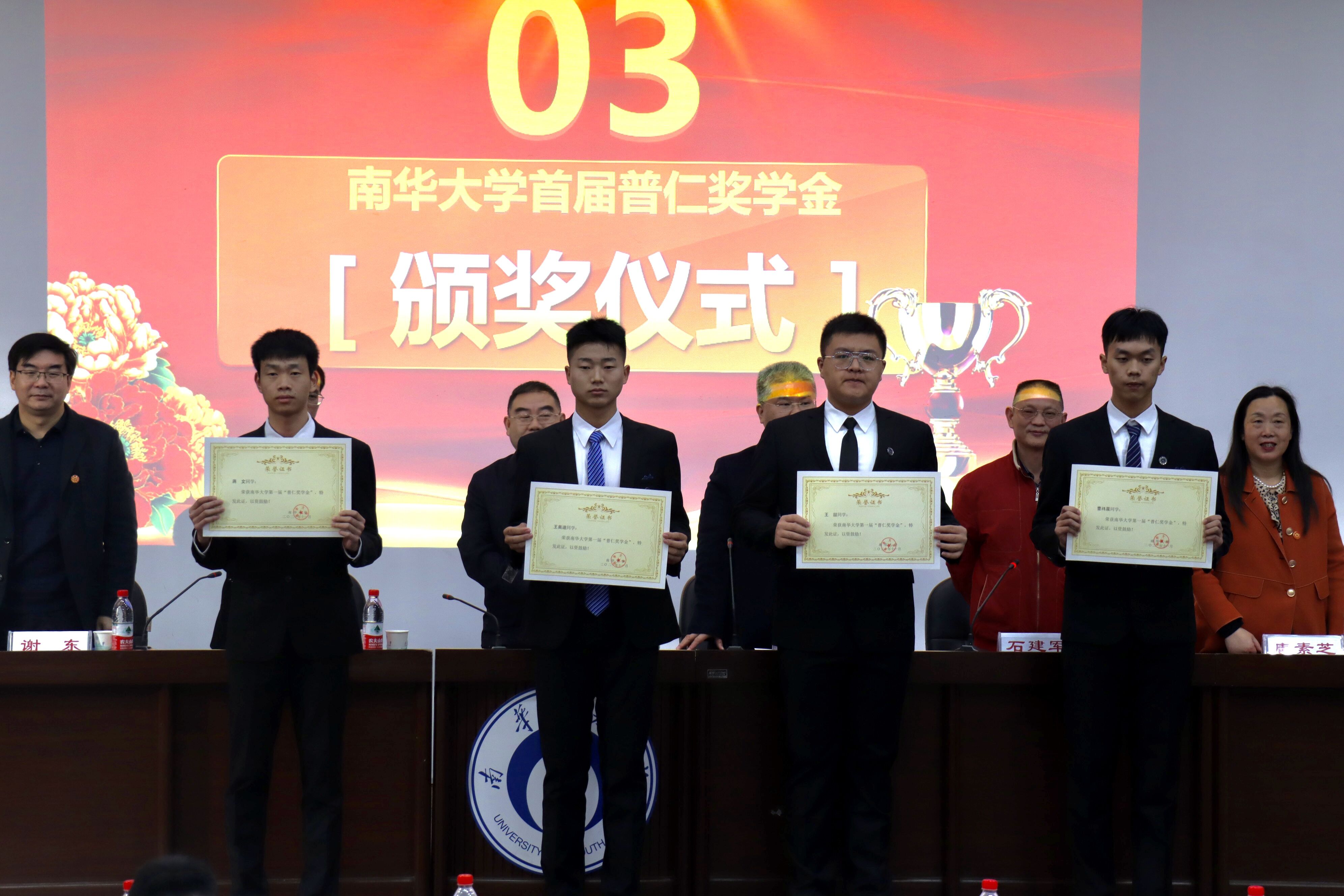 典礼伊始,由伟德国际1946院长谢东致辞。谢院长介绍了普仁奖学金的基本情况、首届普仁奖学金的评审过程以及学院的发展概况,对校友心系母校和学院建设发展、助力学子成长成才的善举表示衷心的感谢!同时他也希望获奖同学能珍惜荣誉,创新学习,全面发展,再创佳绩。紧接着,校学生工作部部长李照老师宣读首届普仁奖学金获得者名单。各位领导及校友为12名获奖同学颁奖。