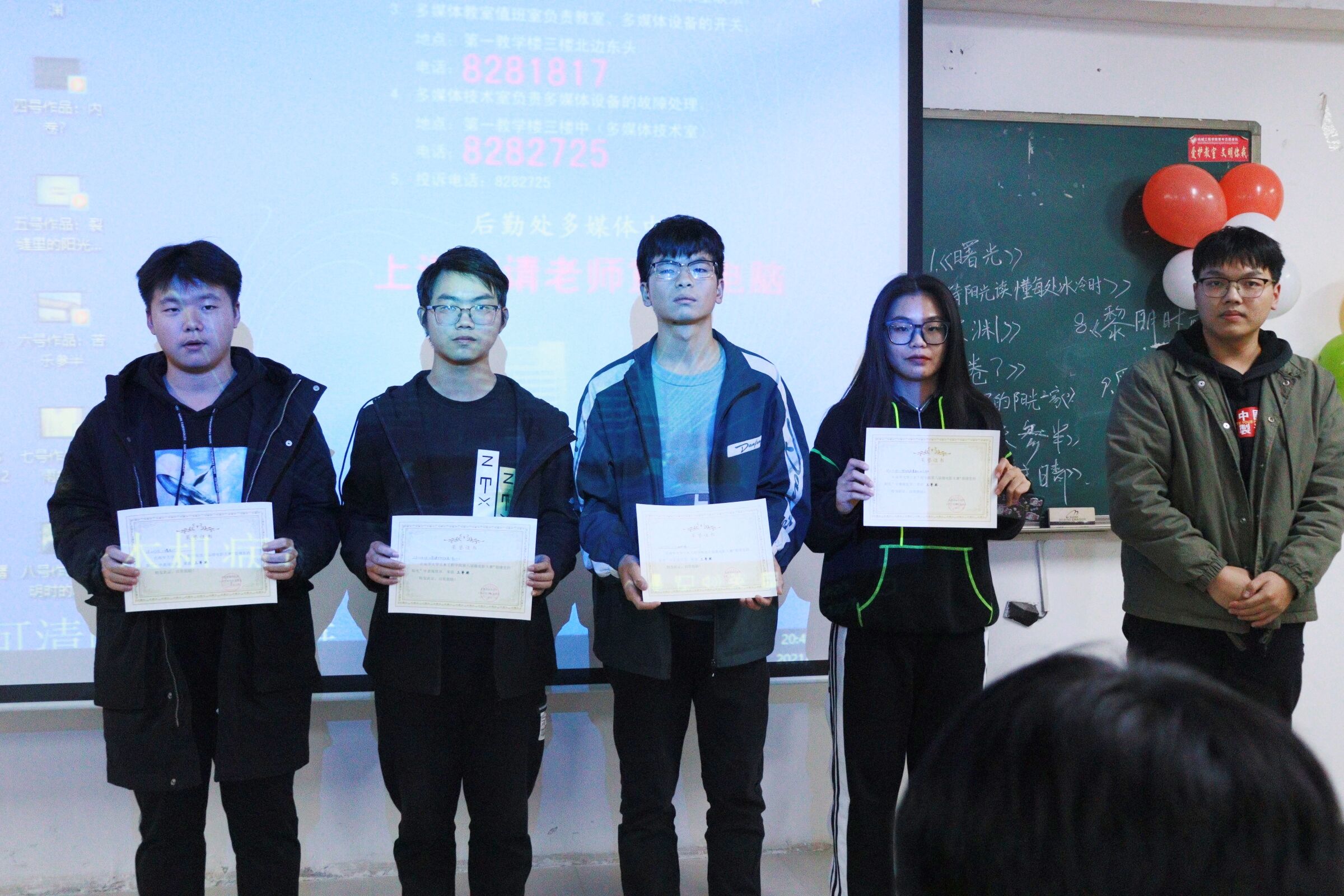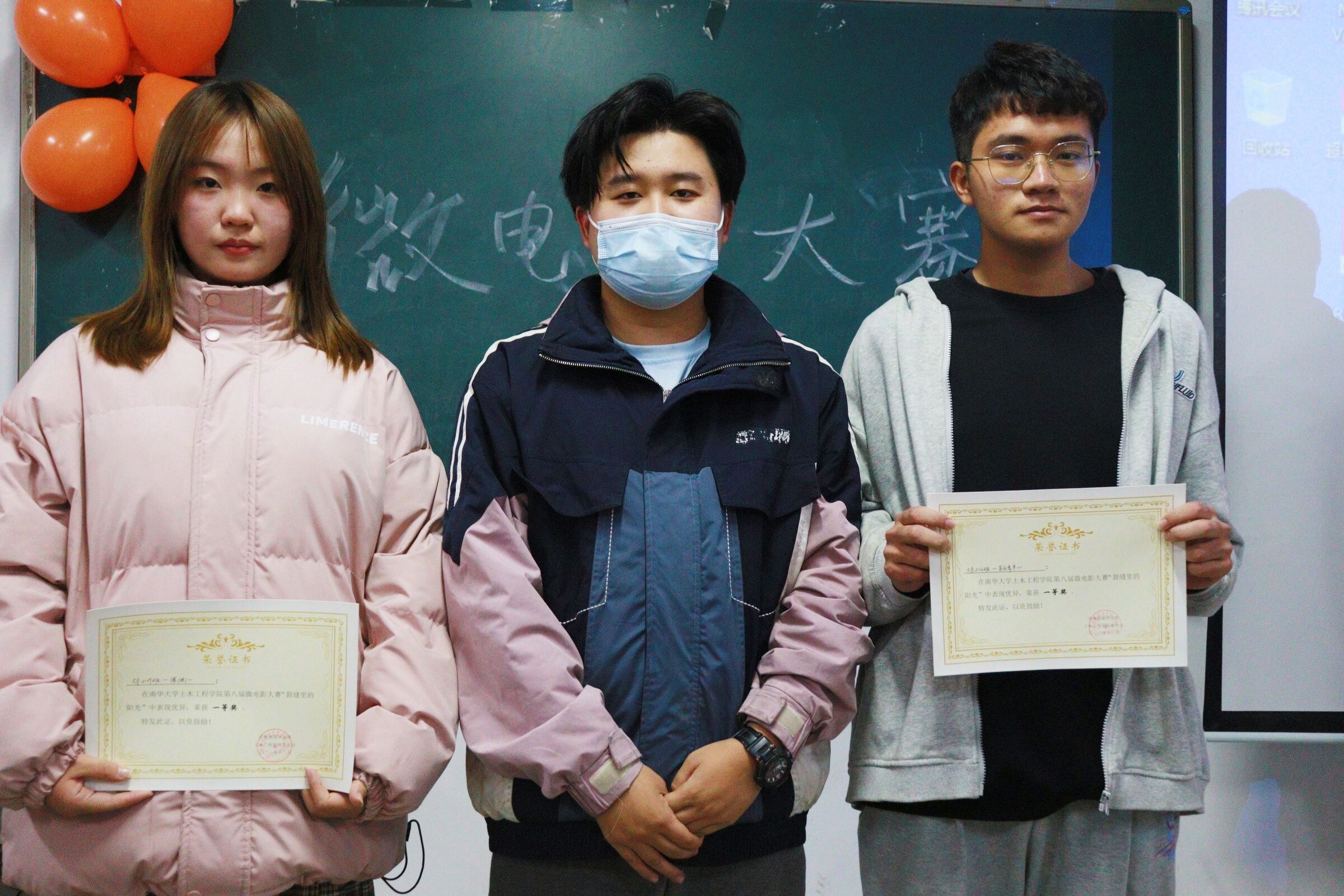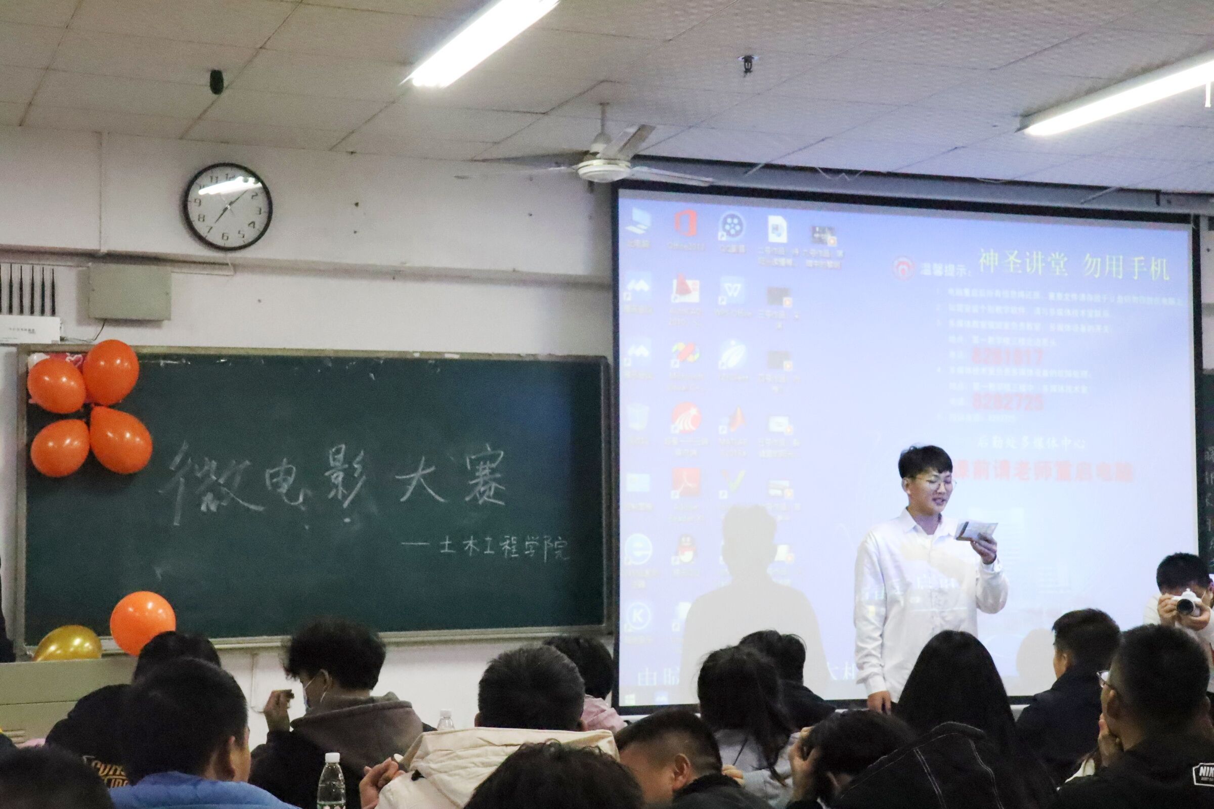 比赛开始前,主持人介绍到场嘉宾及本次大赛相关规则。随后大家共同观看入围决赛的作品。观影过程中,大家全身心投入到影片中,感悟影片所传达的情感与精神。每部影片放映结束后,由各评委评分,工作人员统分。中途,雷本顺和张钞对已放映的影片进行点评,对同学们积极参与和用心准备给予了高度肯定。所有参赛作品播放并统分排序完毕后,主持人宣布获奖名单,到场嘉宾依次为获奖团体代表颁奖并合影留念。至此,本次微电影大赛圆满结束。
