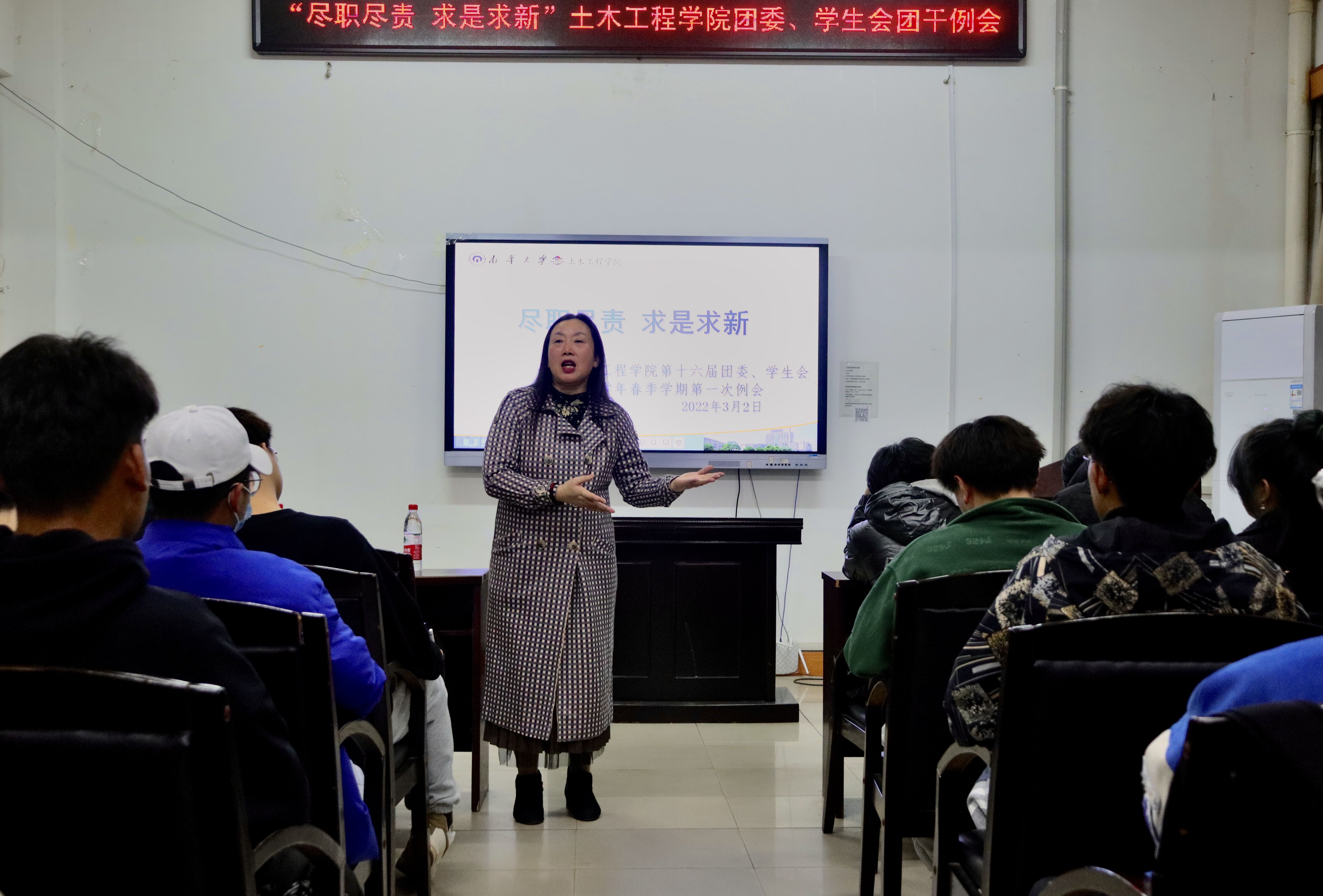 2022年3月2日晚7点,伟德国际1946第十六届团委、学生会2022春季学期第一次团干例会于土木楼四楼会议室进行,院党委副书记唐素芝、团委书记吴旦、辅导员易明明出席了本次会议,本次会议由学生会主席张钞主持。