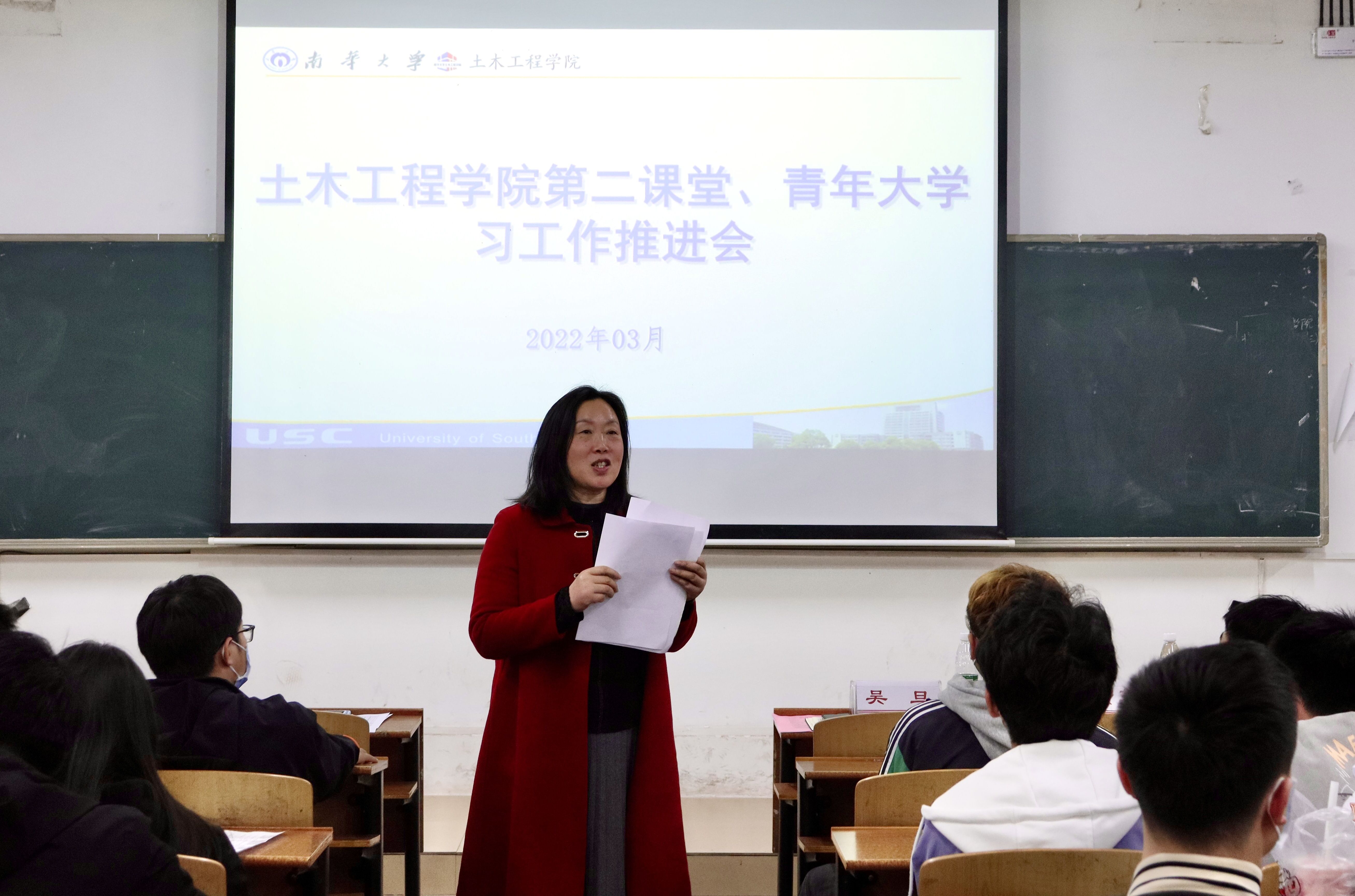 会议伊始,主持人张钞对会议内容和流程作简要介绍。接着,张钞提供各年级二课达标率图表并对我院第二课堂数据情况作简要说明。紧接着,院团委副书记罗贵庭对青年大学习学习情况进行简要汇报。听取情况汇报后,吴旦老师发言,对各班班委提出要求。他强调青年大学习以及第二课堂活动的重要性,希望同学们以德智体美劳全面发展为根本目标;此外,他还要求各班班长要有责任和担当,将会议精神落实到班级每一位同学。