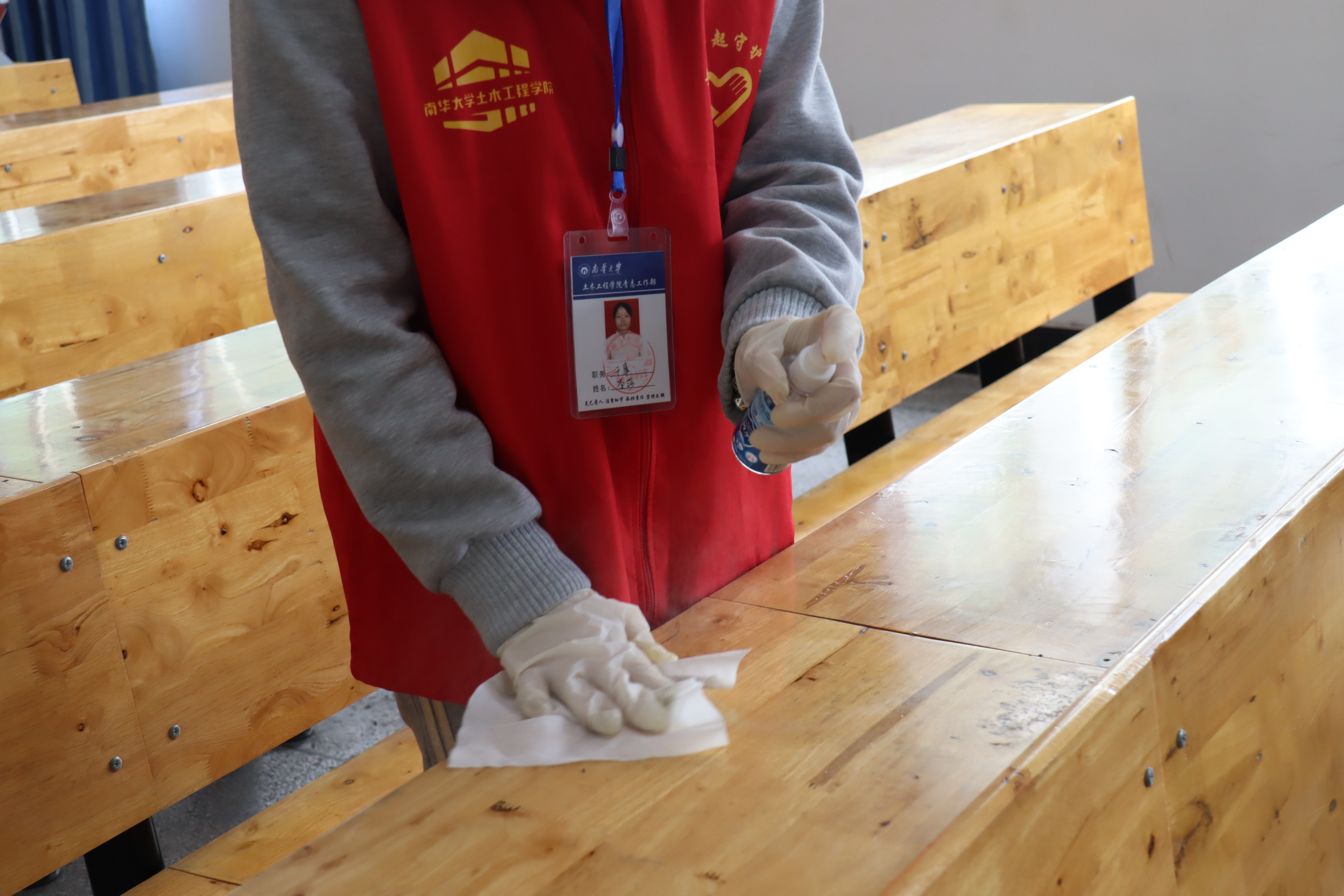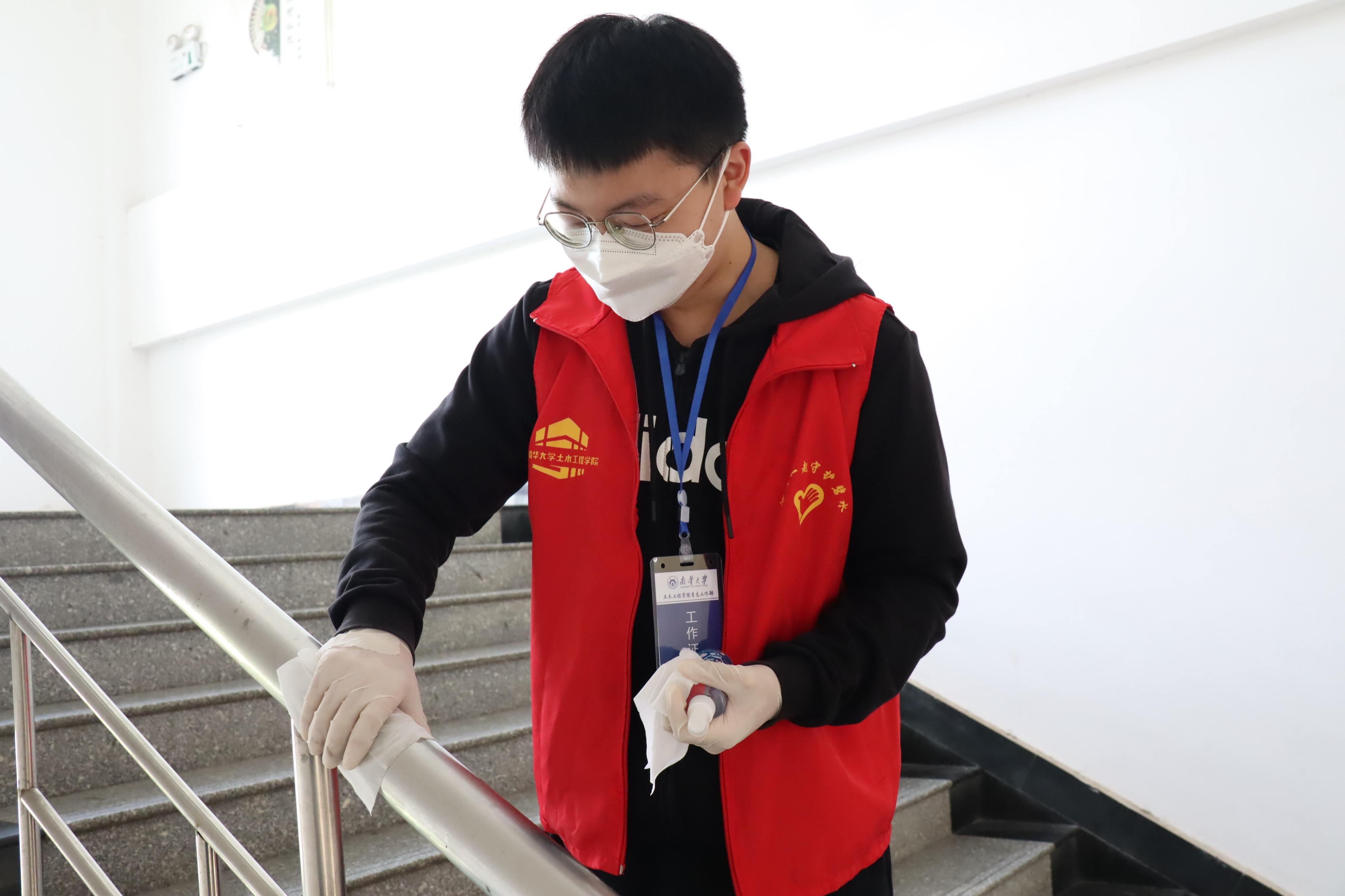 “同心战疫,共克时艰”南华楼清洁志愿消毒活动