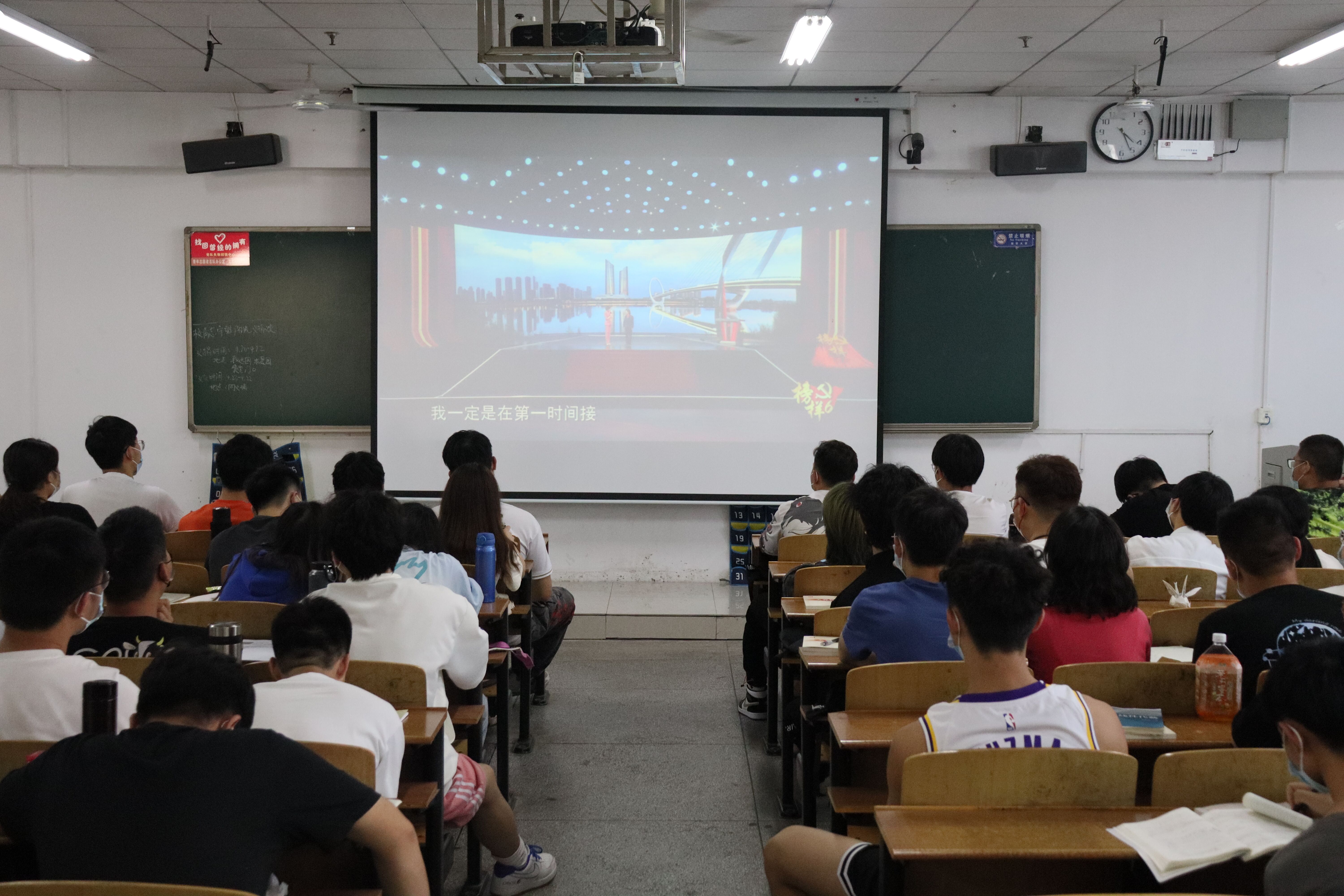 2022年4月23日15时40分,伟德国际1946分党校组织2022年上半年入党积极分子于土木楼四楼会议室、南华楼412、512教室集中观看建党100周年特别节目《榜样6》,共同聆听先锋故事,感受榜样力量。