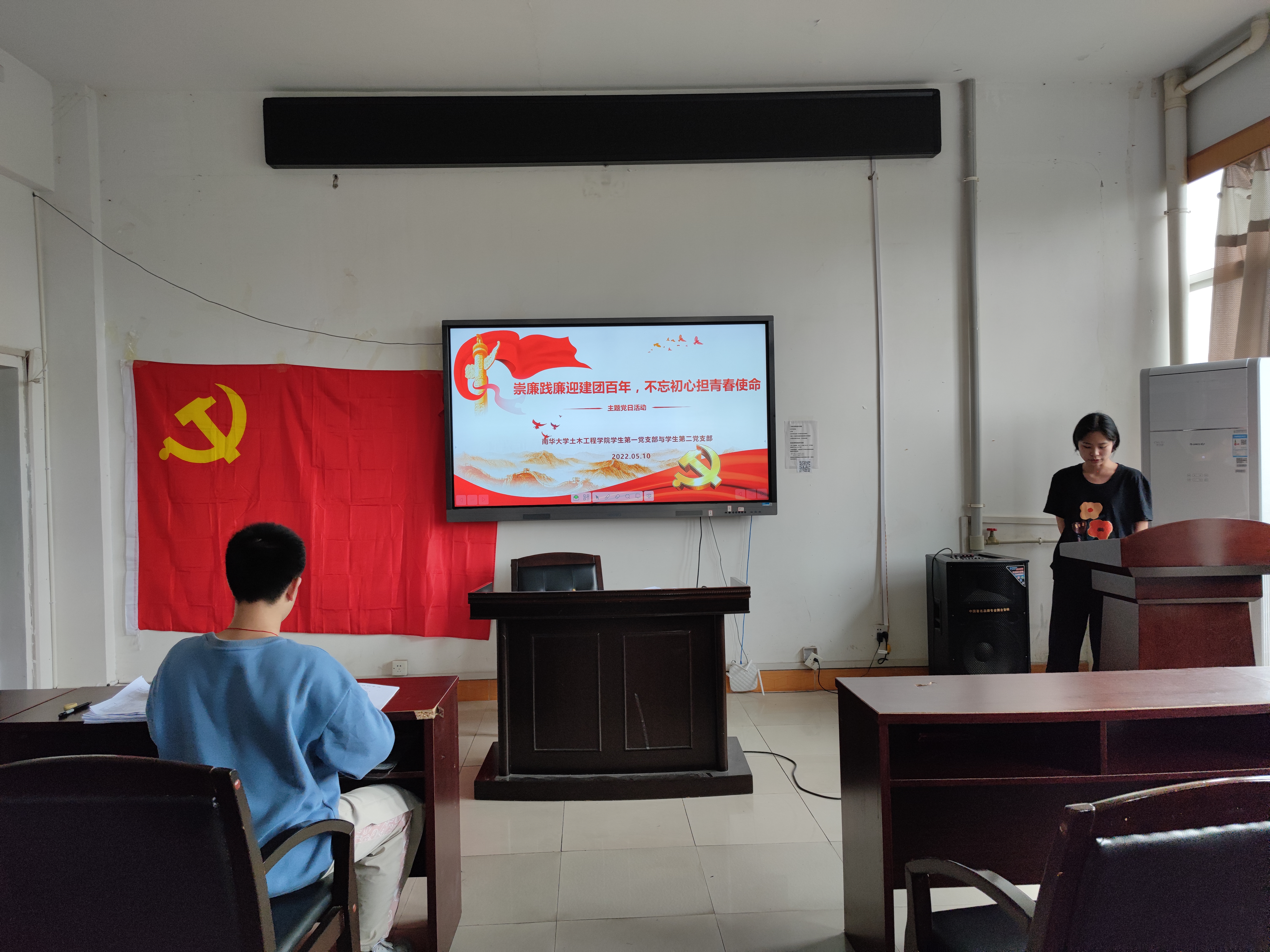 2022年5月10日10:00,伟德国际1946学生第一党支部与学生第二党支部开展“崇廉践廉迎建团百年,不忘初心担青春使命”主题党日活动。活动由谌琪欣同志主持,支部全体党员参加。