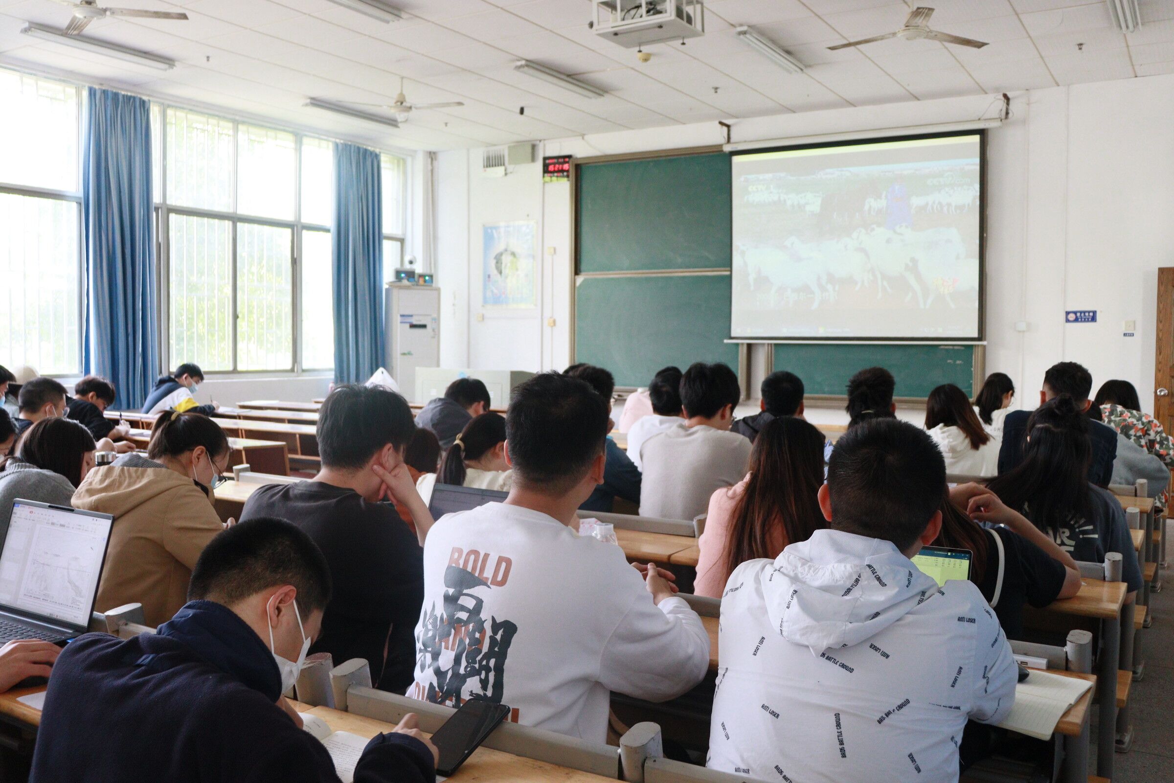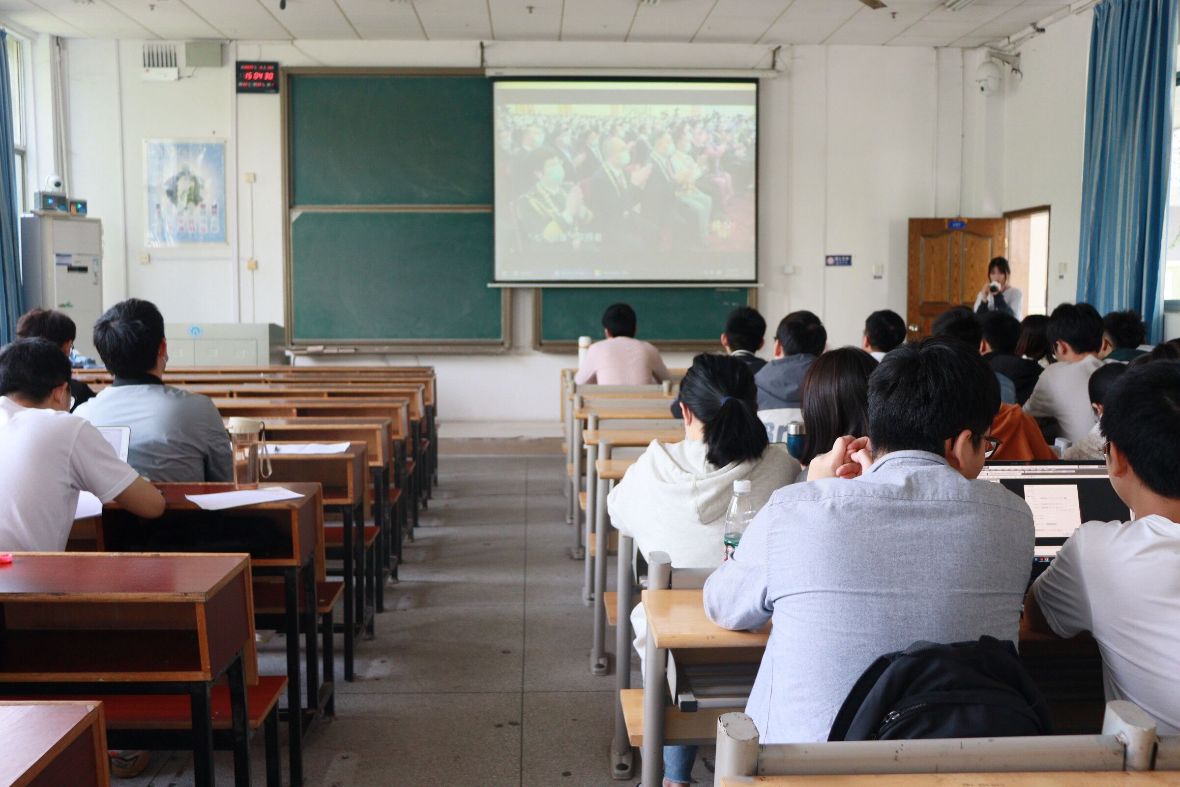 2022年5月16日15时40分,伟德国际1946分党校组织党员培训班全体学员于南华楼107教室集中观看建党100周年特别节目《榜样6》,共同聆听先锋故事,感受榜样力量。