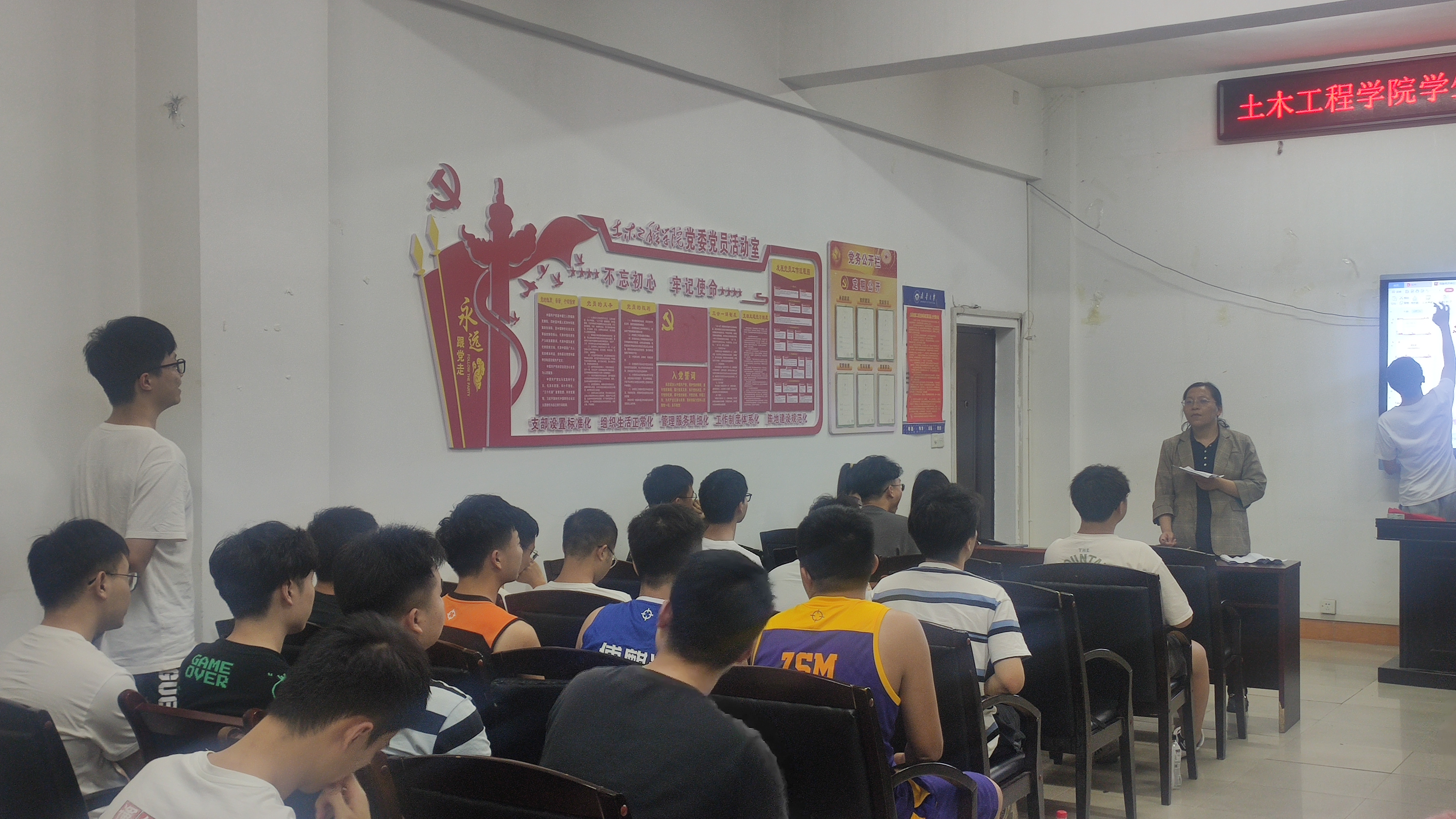 会议第三项,支部书记刘华老师总结发言,她对党员同志们提出了三点要求,第一,始终保持对党忠诚,落实在一言一行中、体现在一点一滴中、贯穿于一生一世中;第二,讲豪情、有担当,要做起而行之的劳动者,不做坐而论道的看客;第三,要守底线,立身不忘人之本,为官不移公仆之志,用权不谋一己之私,处事不循庸俗之情。并再次强调党员同学要时刻关心身边事、关注身边的人,做到及时反馈,时时展示正力量,确保学风稳定、确保毕业生顺利离校等。