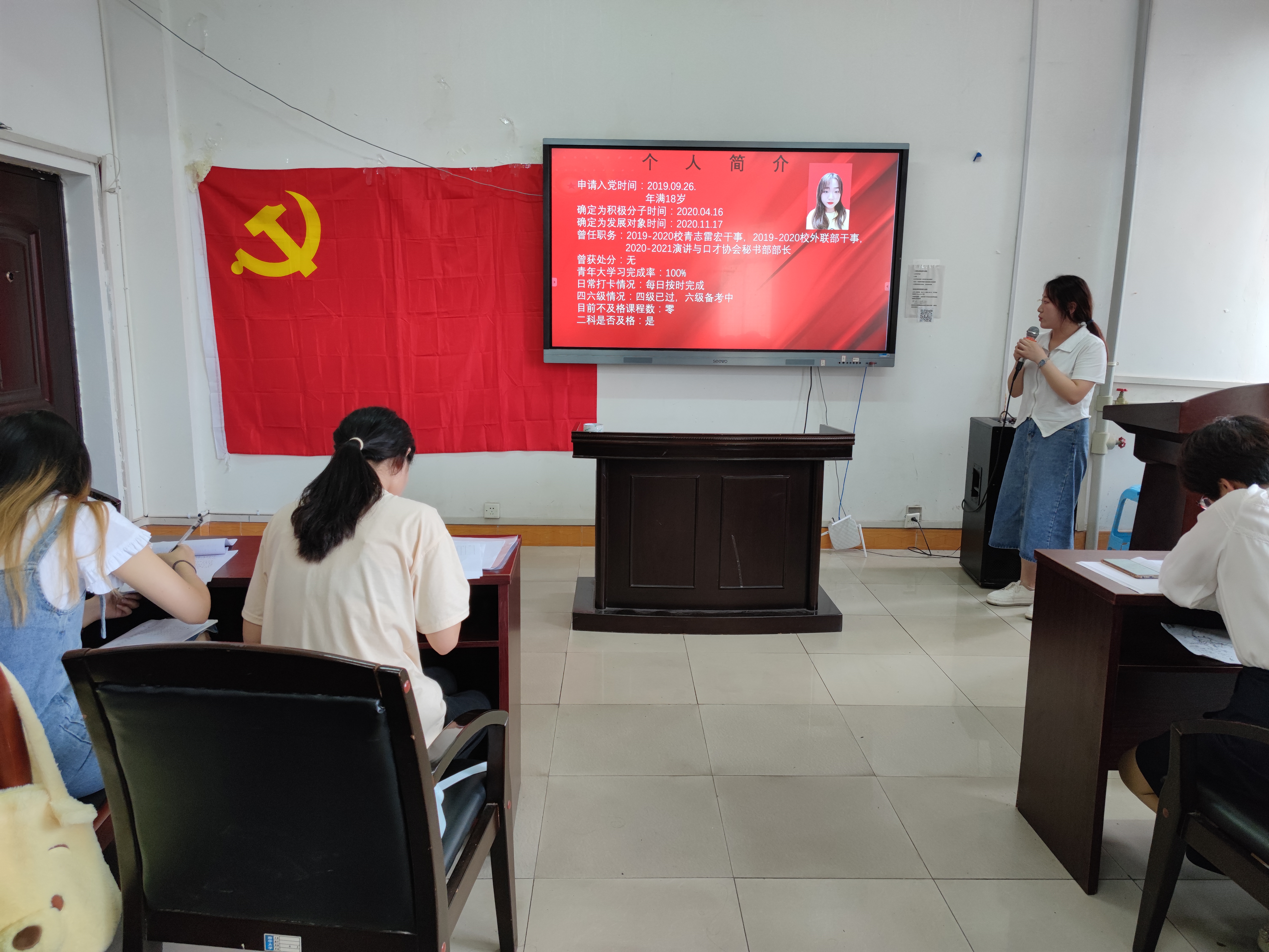 最后,支部书记对答辩会进行了总结,并提出建议:希望大家以正确的态度对待党组织的考验,从自身出发反思不足,全方位、多角度的培养、锻炼、提升自己,在学习、工作、生活的日常点滴中践行党员标准,做到知、信、行合一。